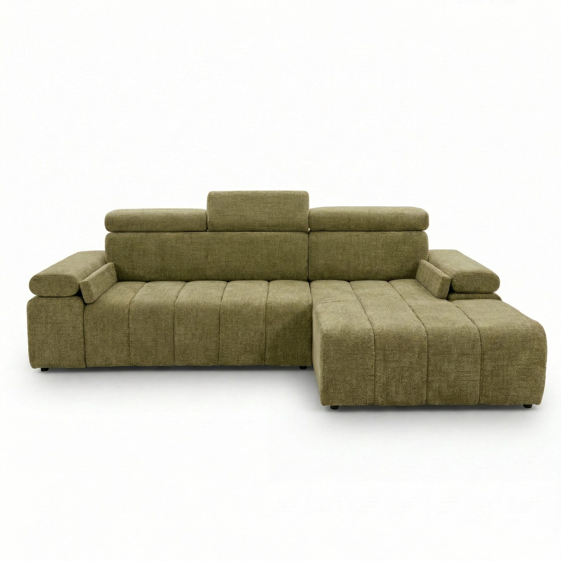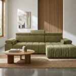 Narożnik z funkcją spania Calm prawostronny L-kształtny oliwkowy szenil