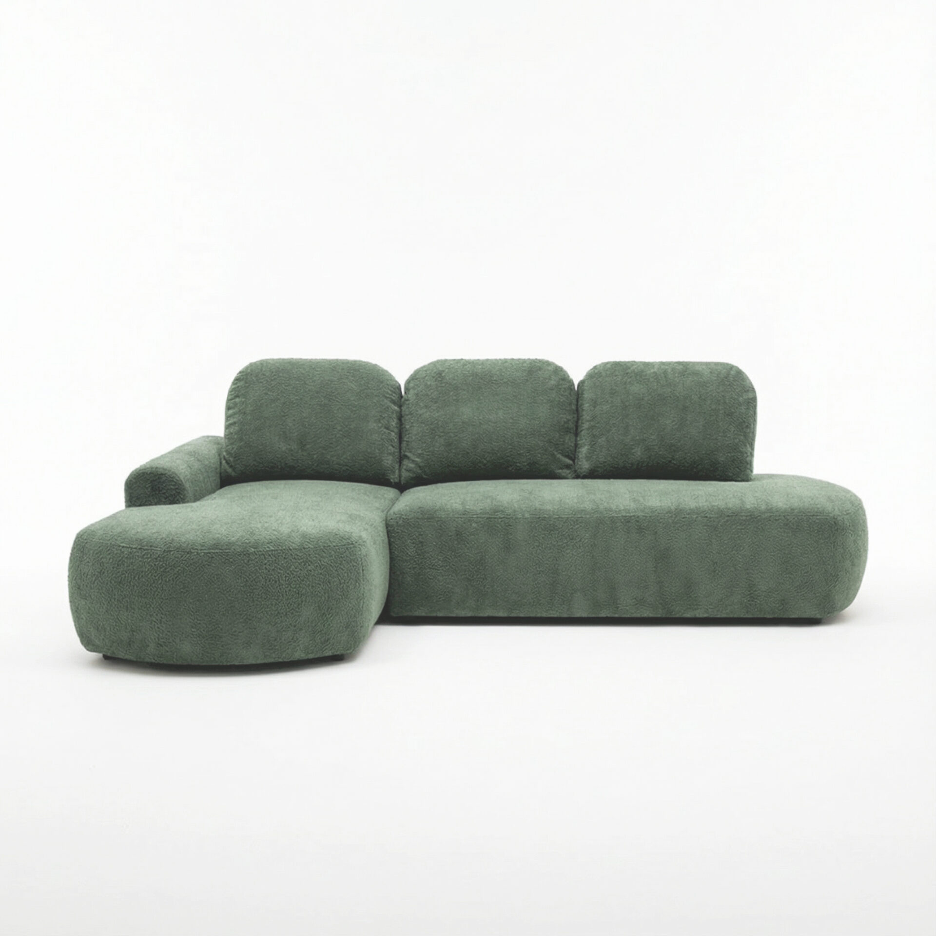 Narożnik z funkcją spania Cloud lewy L-kształtny z pojemnikiem na pościel zielony plusz