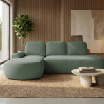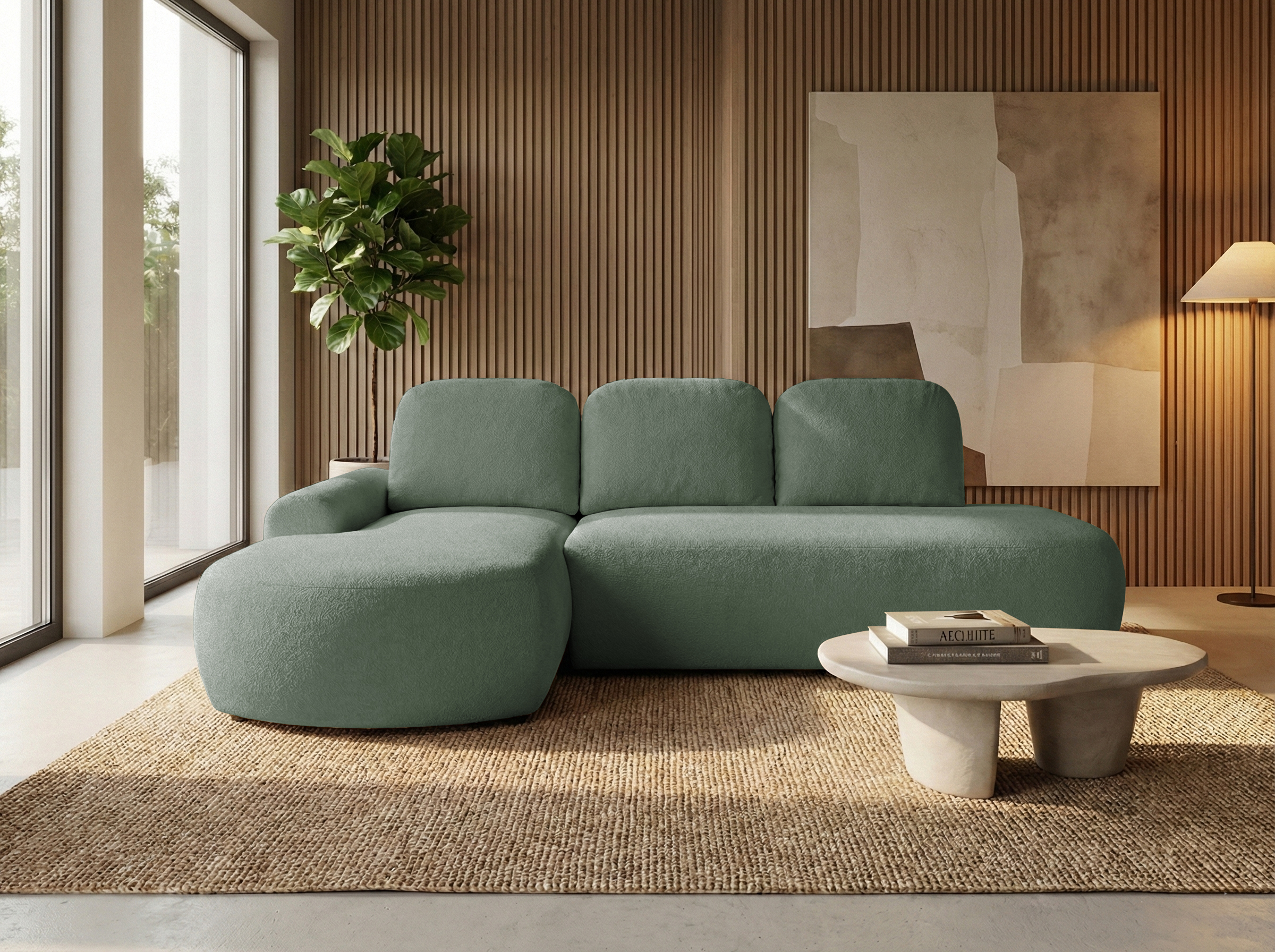 Harmonijna forma narożnika w kształcie litery L zapewnia wygodną przestrzeń do wypoczynku i sprzyja relaksowi po długim dniu. Tapicerowany tył umożliwia swobodne ustawienie mebla w dowolnym miejscu pomieszczenia, również na jego środku, tworząc spójną i estetyczną strefę wypoczynkową. Jego bryła sprawia, że narożnik Cloud z łatwością dopasuje się do różnych stylów wnętrzarskich.