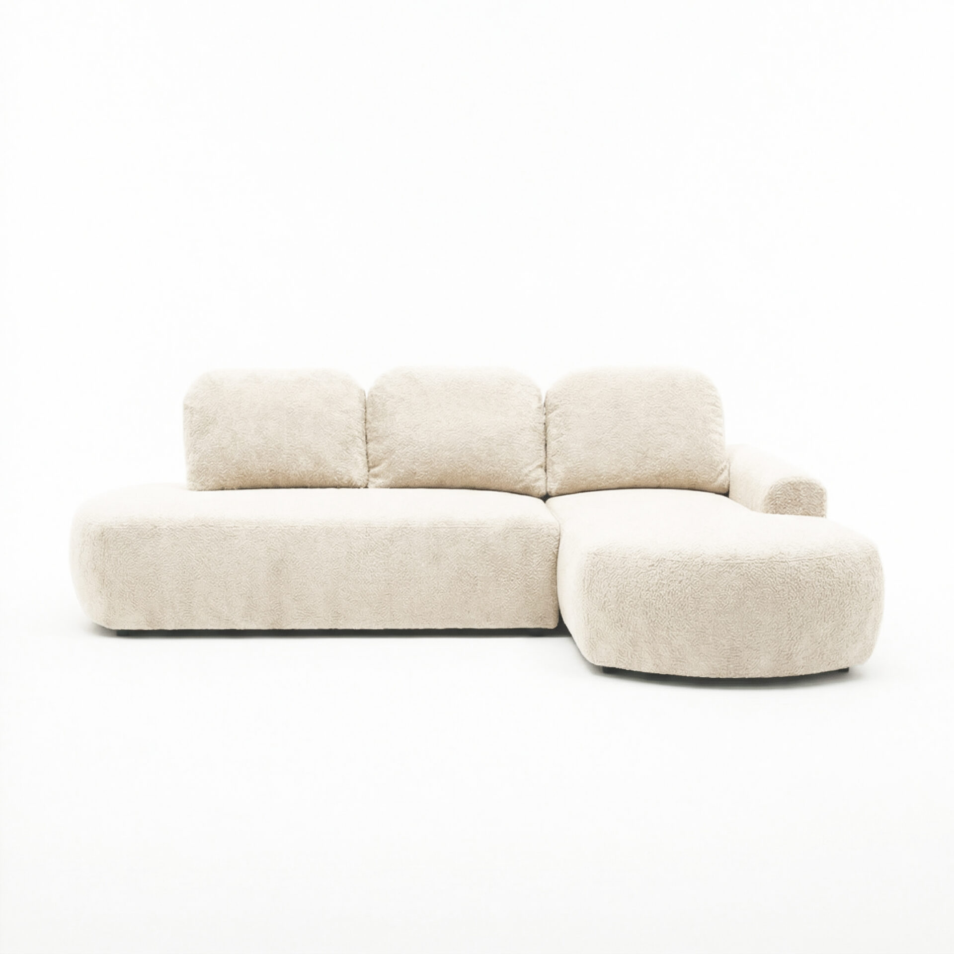 Narożnik z funkcją spania Cloud prawy L-kształtny z pojemnikiem na pościel jasnokremowy plusz