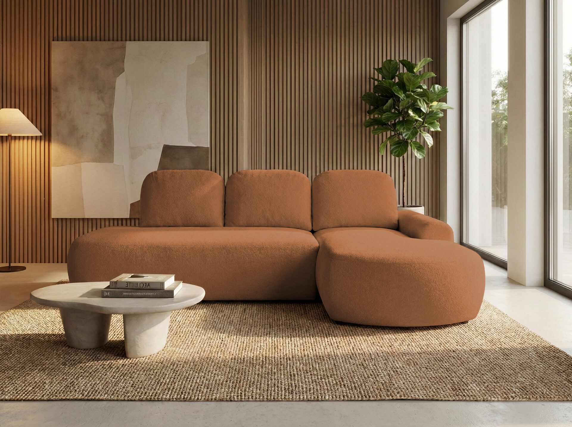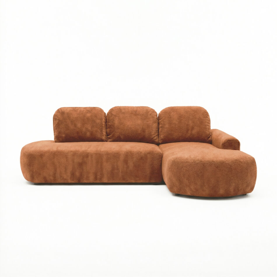 Harmonijna forma narożnika w kształcie litery L zapewnia wygodną przestrzeń do wypoczynku i sprzyja relaksowi po długim dniu. Tapicerowany tył umożliwia swobodne ustawienie mebla w dowolnym miejscu pomieszczenia, również na jego środku, tworząc spójną i estetyczną strefę wypoczynkową. Jego bryła sprawia, że narożnik Cloud z łatwością dopasuje się do różnych stylów wnętrzarskich.