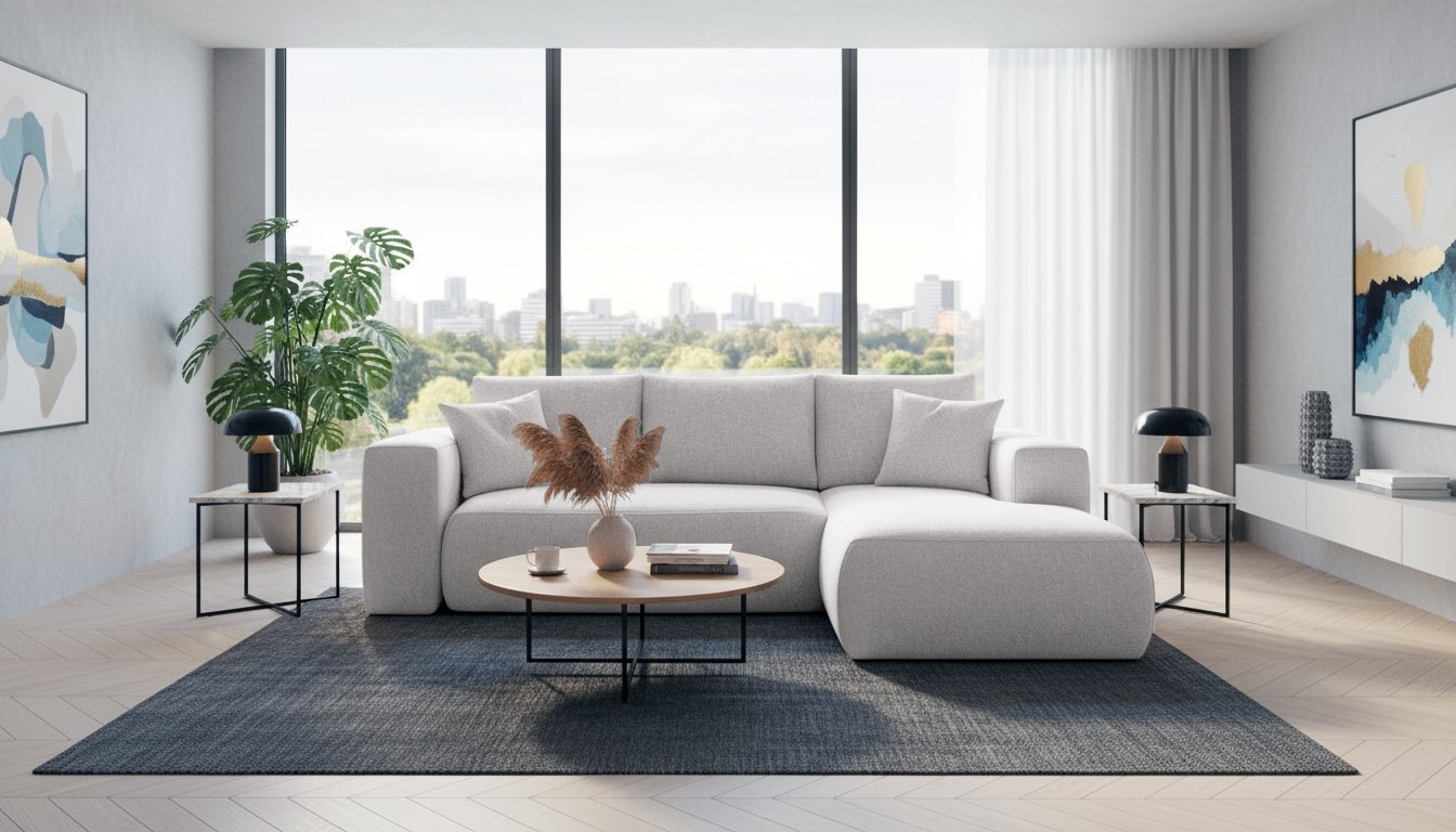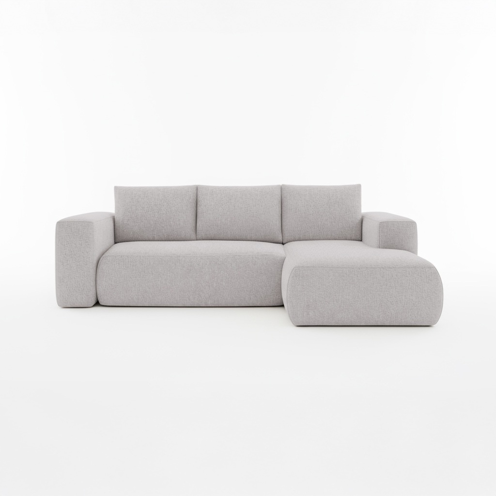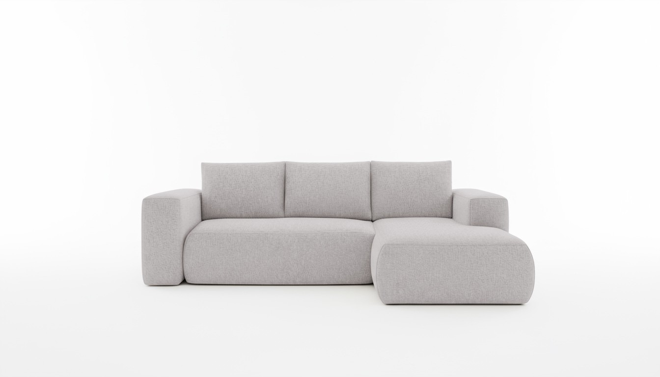 Stonowany jasnoszary narożnik Lambi wprowadza do domu atmosferę spokoju i wygody. Jego miękka tkanina i praktyczne funkcje sprawiają, że salon staje się ulubionym miejscem wypoczynku dla całej rodziny.