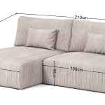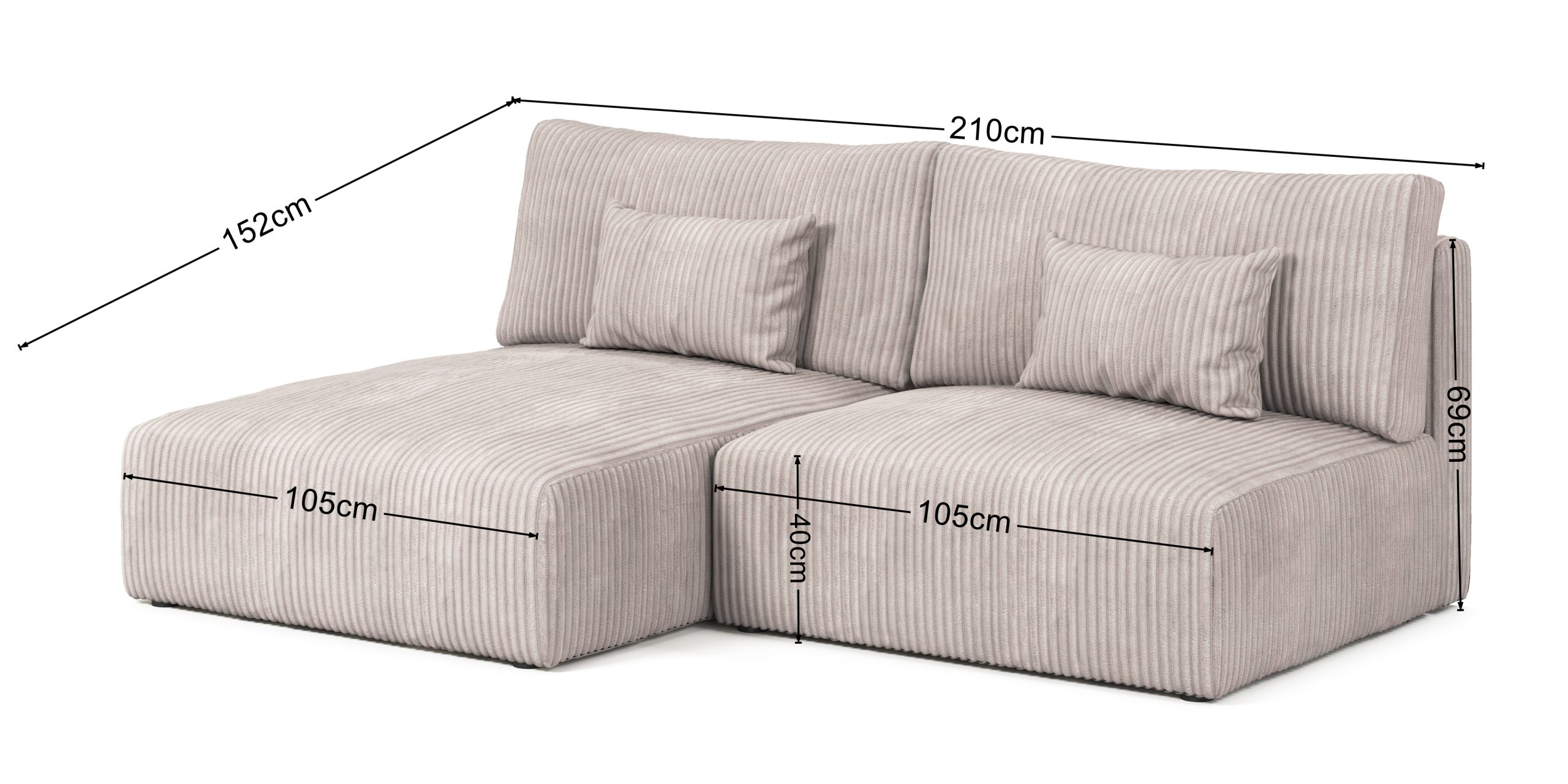 Wypełnienie siedziska ze sprężyn falistych i pianki zapewnia wysoki komfort codziennego użytkowania. Dwie duże poduszki oparciowe gwarantują wygodne wsparcie dla pleców, a dwie mniejsze poduszki lędźwiowe dodatkowo zwiększają komfort podczas relaksu – niezależnie od tego, czy oglądasz film, czy czytasz książkę.