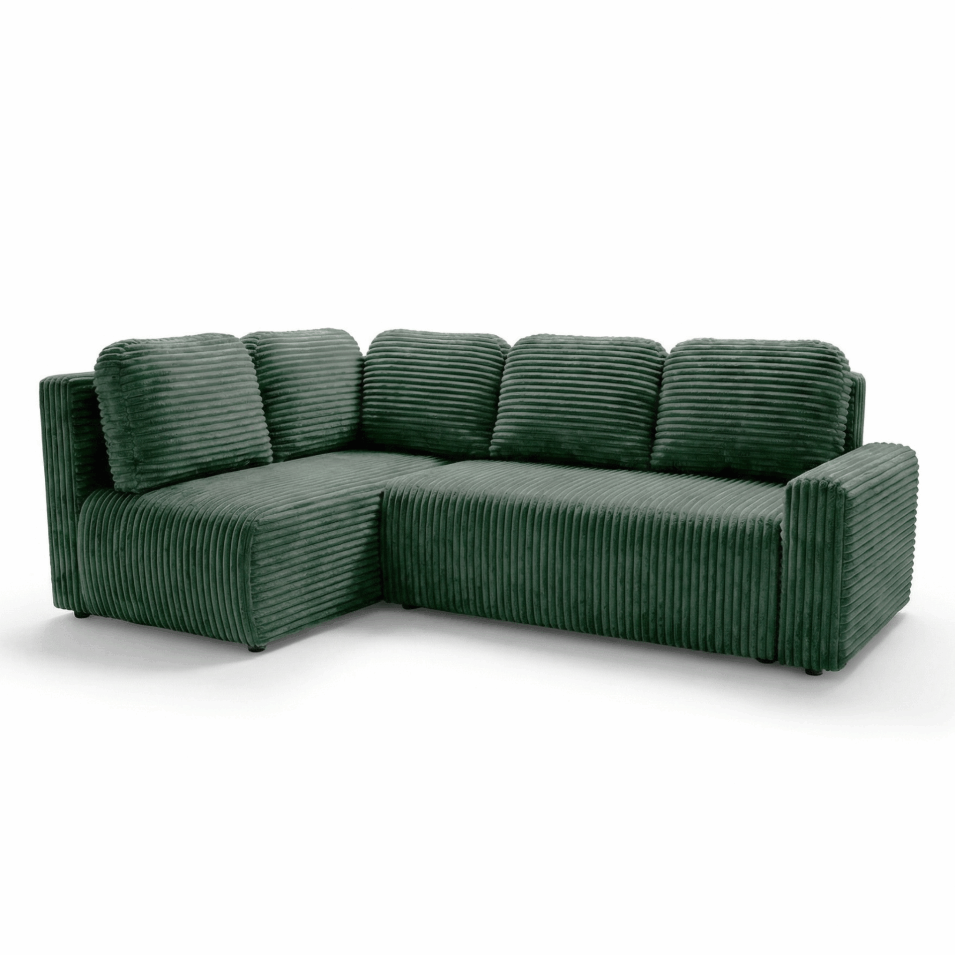 Narożnik z funkcją spania Nesso L lewy z pojemnikiem na pościel ciemnozielony sztruks