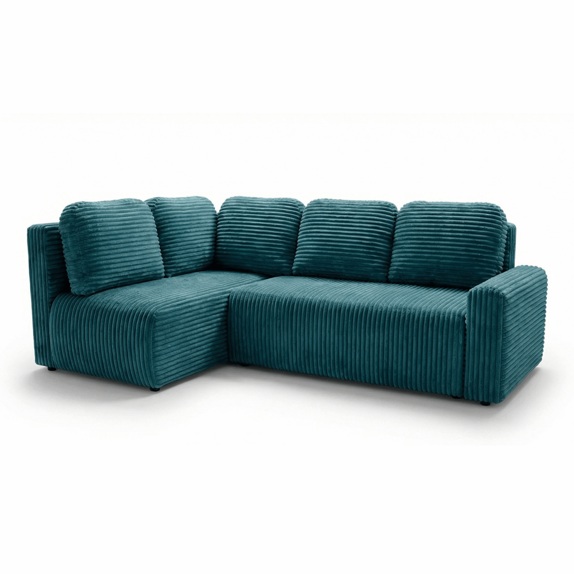 Narożnik z funkcją spania Nesso L lewy z pojemnikiem na pościel turkusowy sztruks