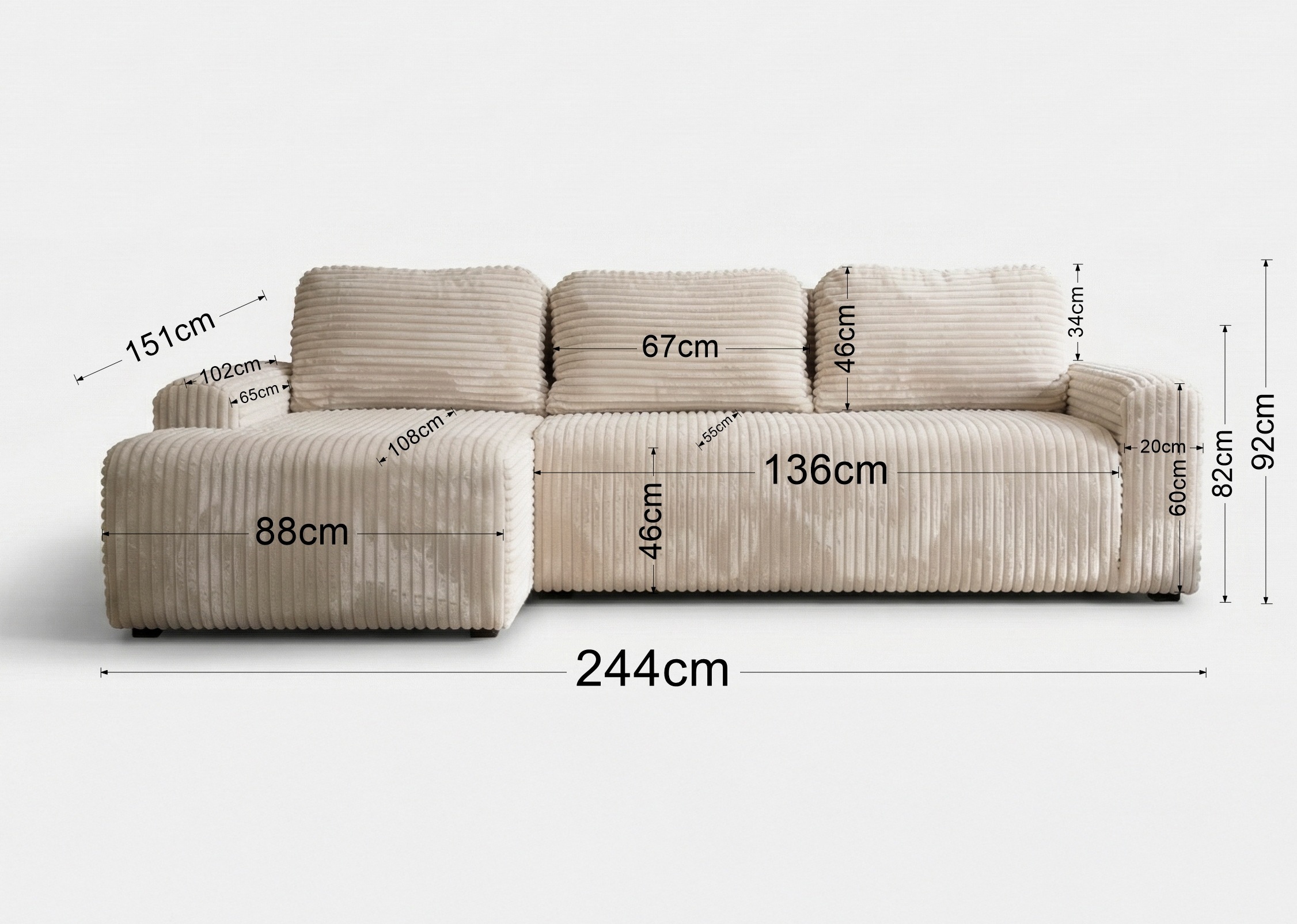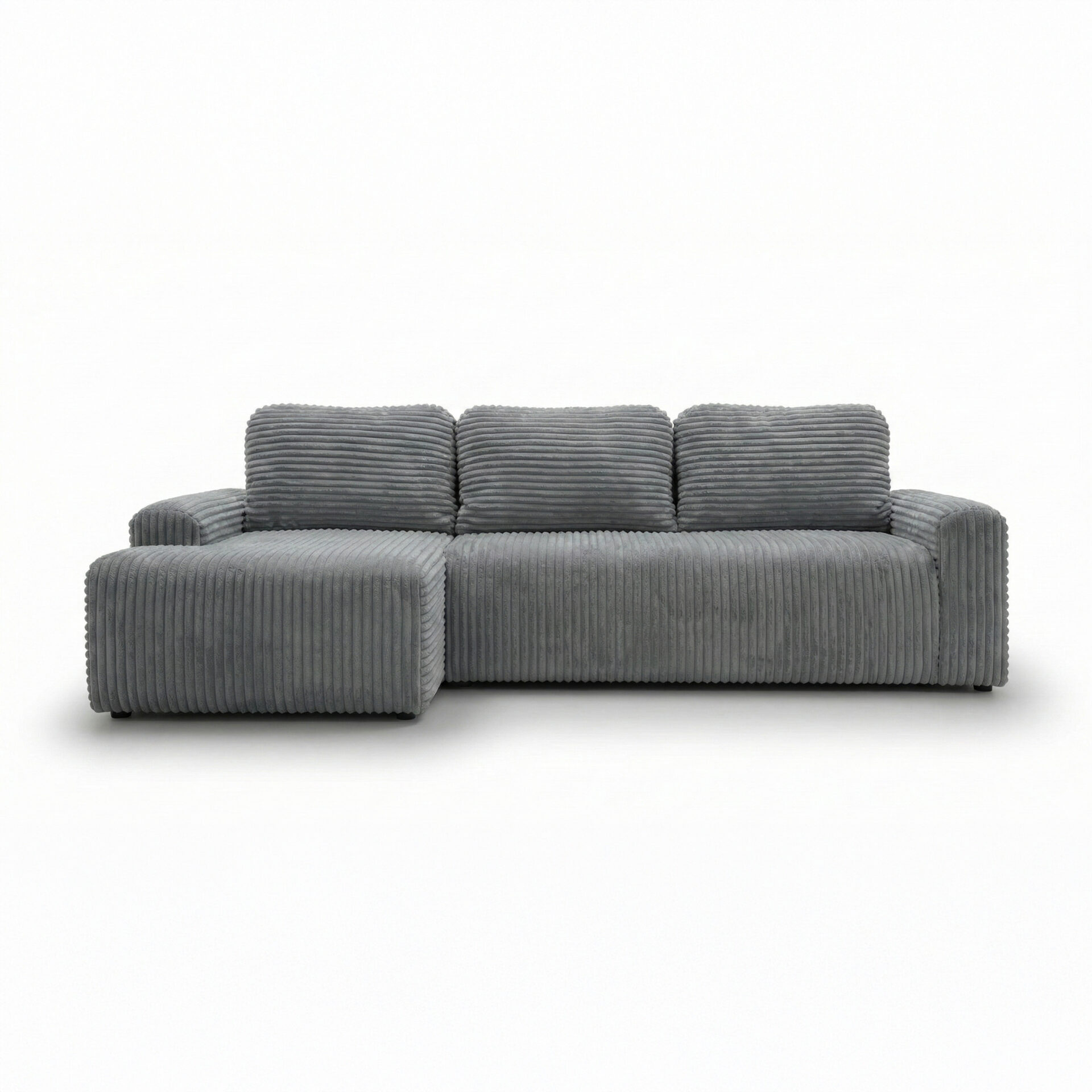 Sztruksowa tkanina podkreśla nowoczesny design i funkcjonalność mebla.