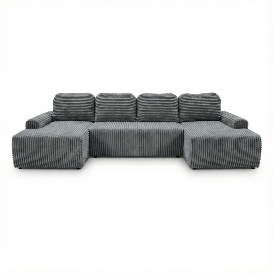 Narożnik z funkcją spania Nesso U-kształtny z pojemnikiem na pościel ciemnoszary sztruks