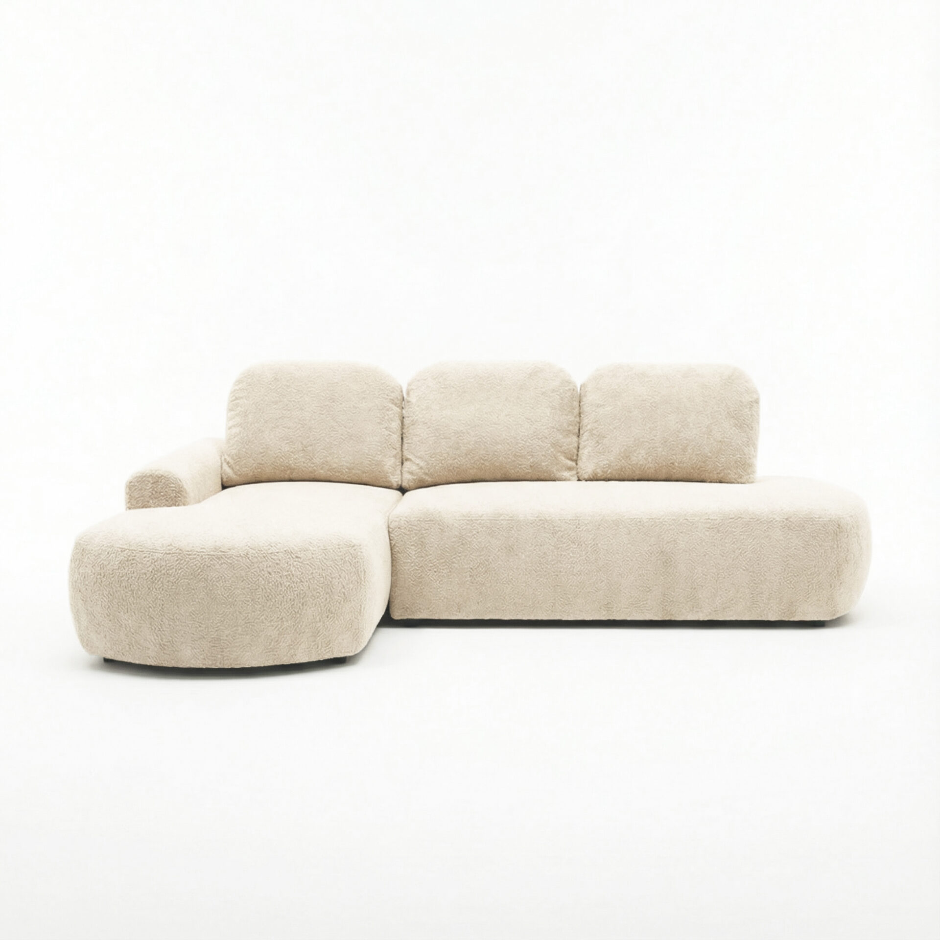 Narożnik z funkcją spania Cloud lewy L-kształtny z pojemnikiem na pościel kremowy plusz