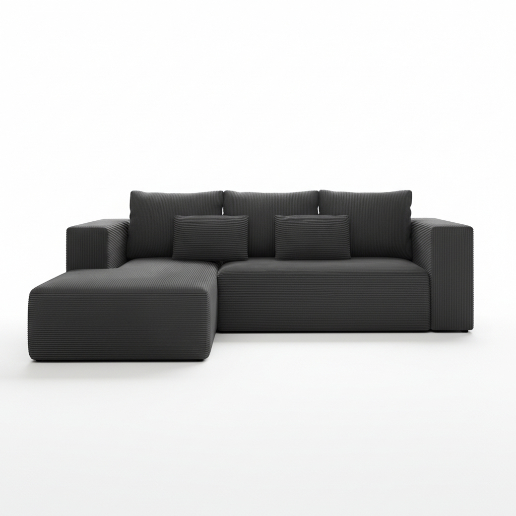 Grafitowy narożnik Stripes wnosi do domu poczucie spokoju i uporządkowanej przestrzeni. Staje się centralnym punktem salonu, gdzie komfort spotyka się z nienagannym stylem.