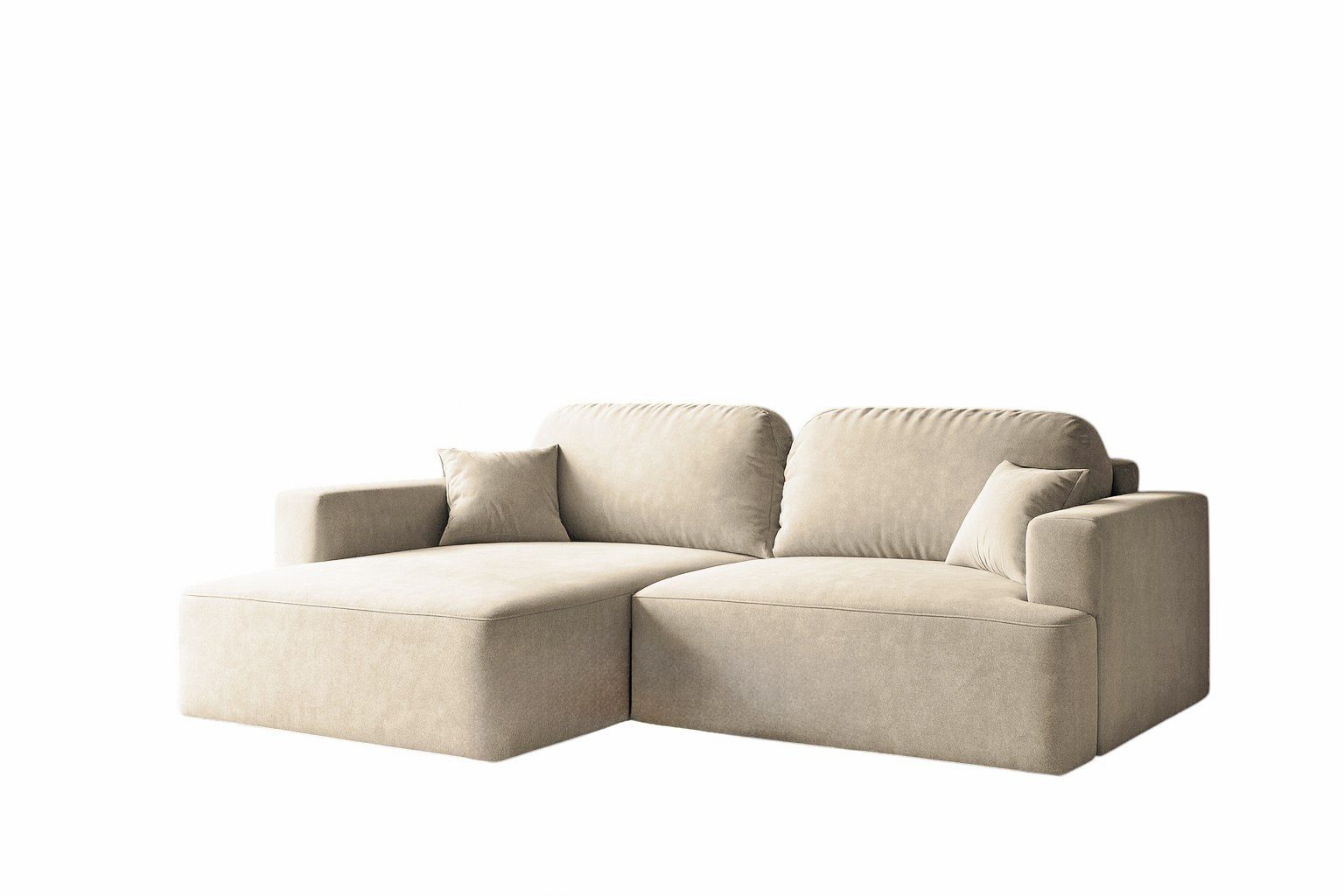 Do narożnika dołączono dekoracyjne poduszki oraz duże poduszki oparciowe, które nadają mu przytulny charakter i podnoszą komfort użytkowania. Dzięki nim Sunny świetnie prezentuje się w każdym wnętrzu, łącząc funkcjonalność z estetyką.