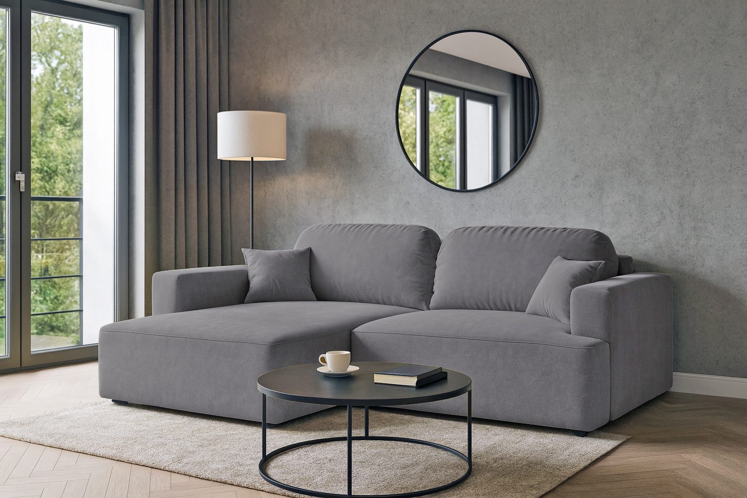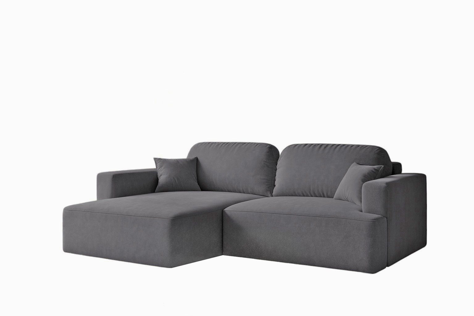 Narożnik z funkcją spania Sunny lewy L-kształtny z pojemnikiem na pościel ciemnoszary welur