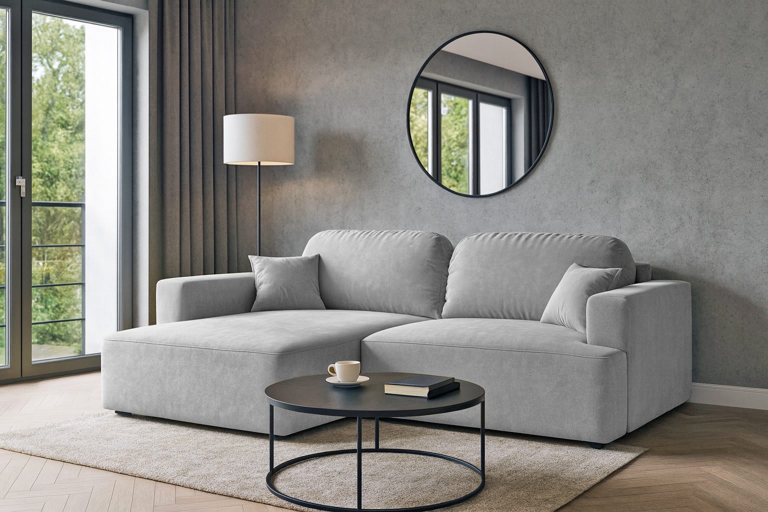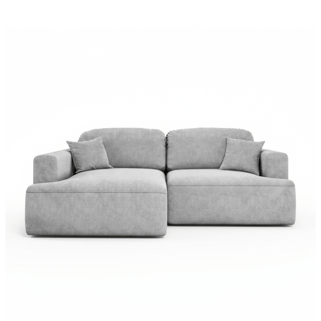 Narożnik z funkcją spania Sunny lewy L-kształtny z pojemnikiem na pościel jasnoszary welur
