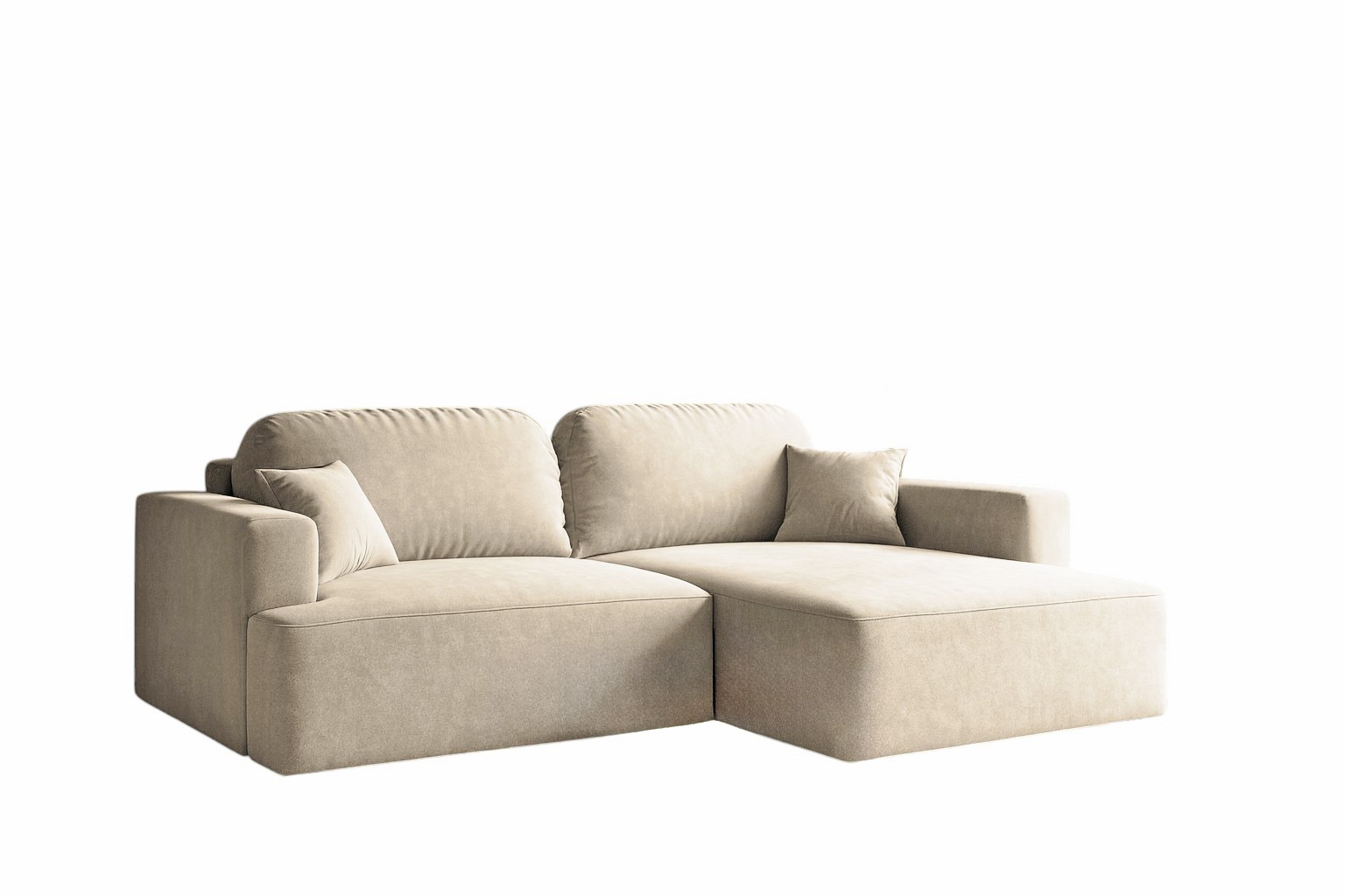 Narożnik z funkcją spania Sunny prawy L-kształtny z pojemnikiem na pościel beżowy welur