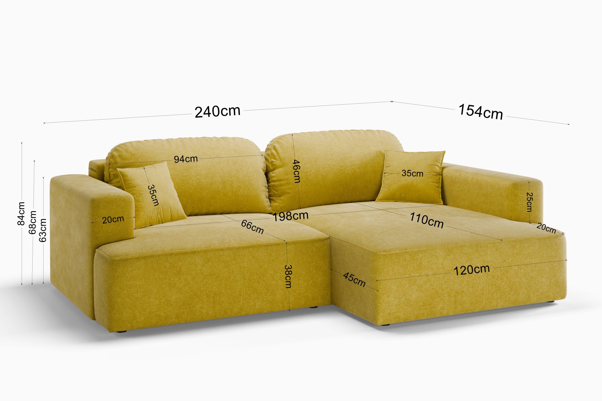 Narożnik Sunny to propozycja dla osób, które poszukują mebla łączącego nowoczesny styl, wygodę oraz praktyczne rozwiązania. Został wykonany na sprężynach falistych, co zapewnia odpowiednią elastyczność i stabilne podparcie. Dzięki temu zarówno siedzenie, jak i spanie na nim jest wyjątkowo komfortowe – idealne zarówno na co dzień, jak i podczas rodzinnych spotkań czy wizyt gości.