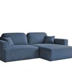Narożnik z funkcją spania Sunny prawy L-kształtny z pojemnikiem na pościel niebieski welur