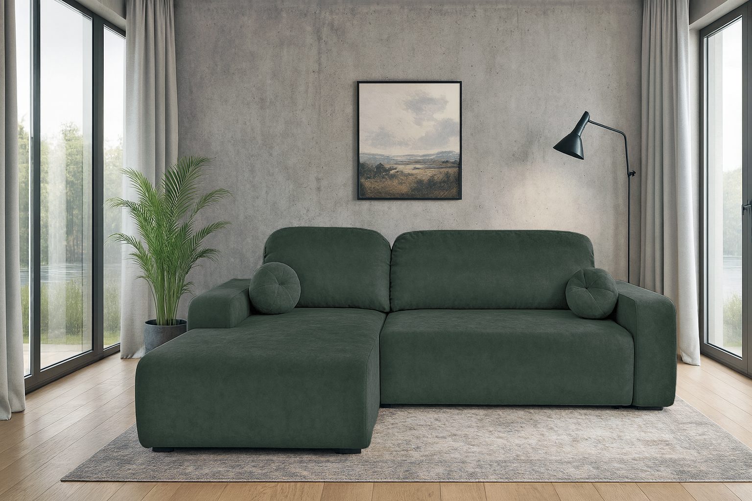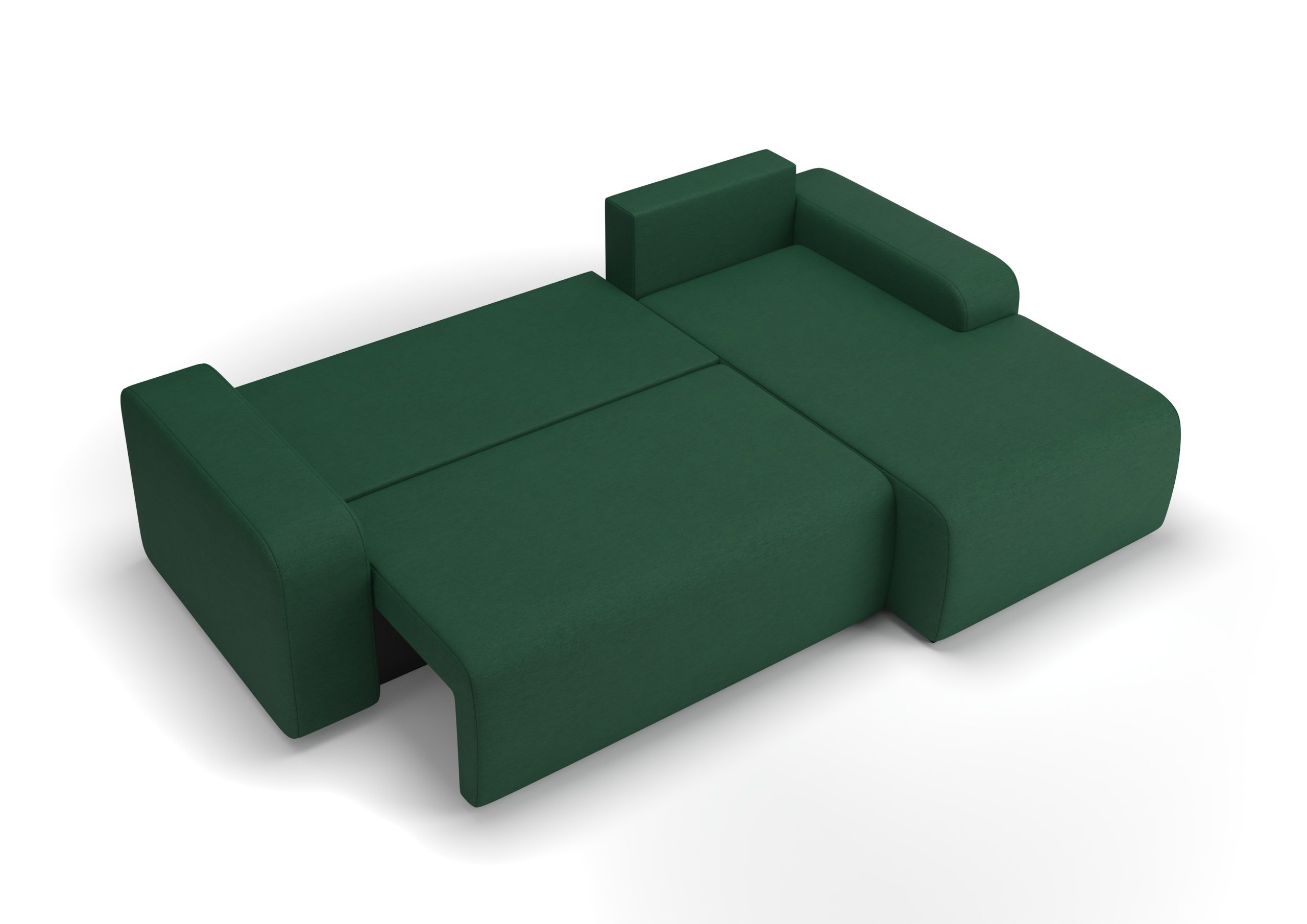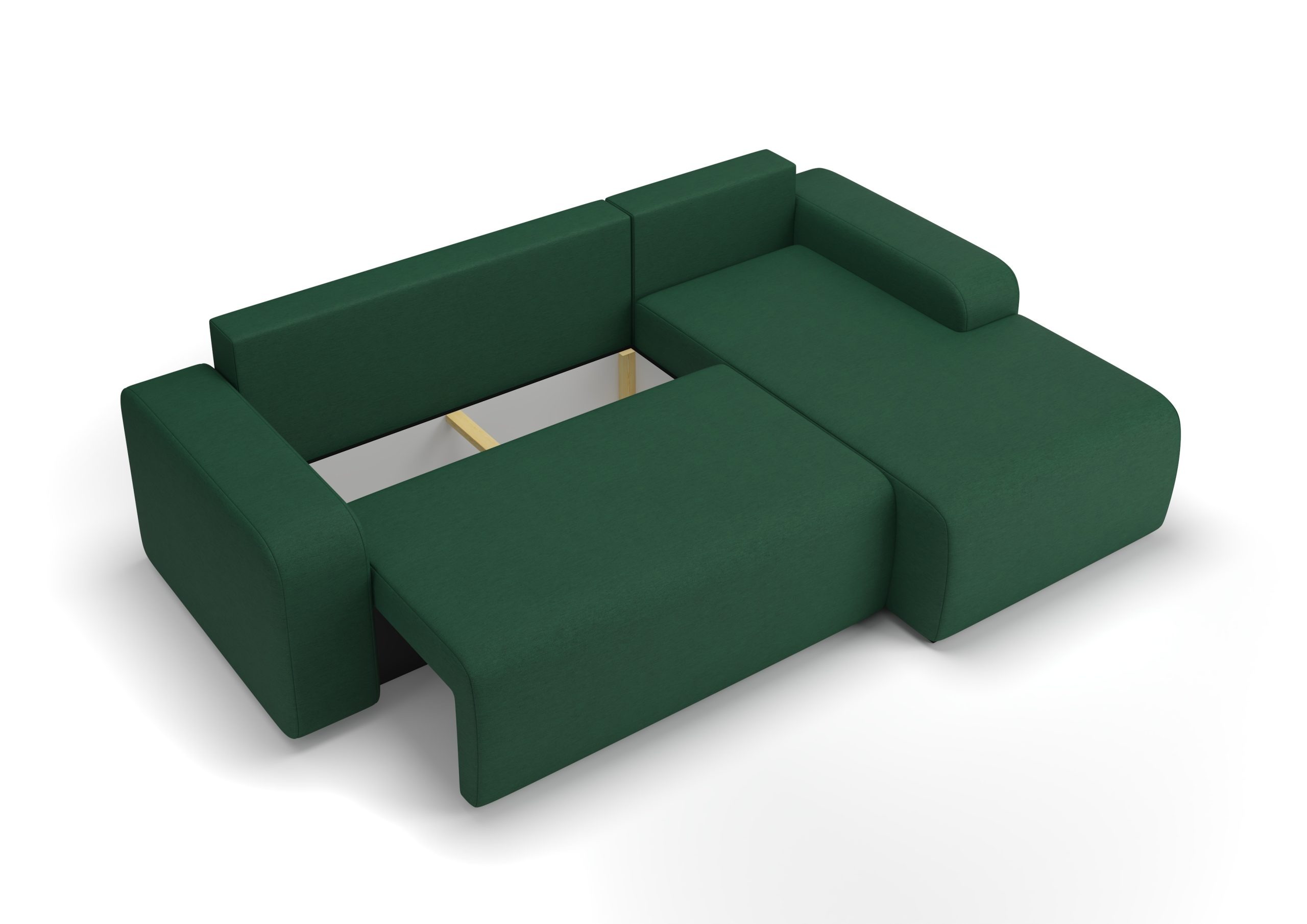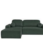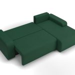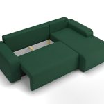Narożnik z funkcją spania Tori lewy L-kształtny z pojemnikiem na pościel butelkowa zieleń welur