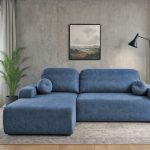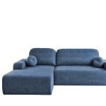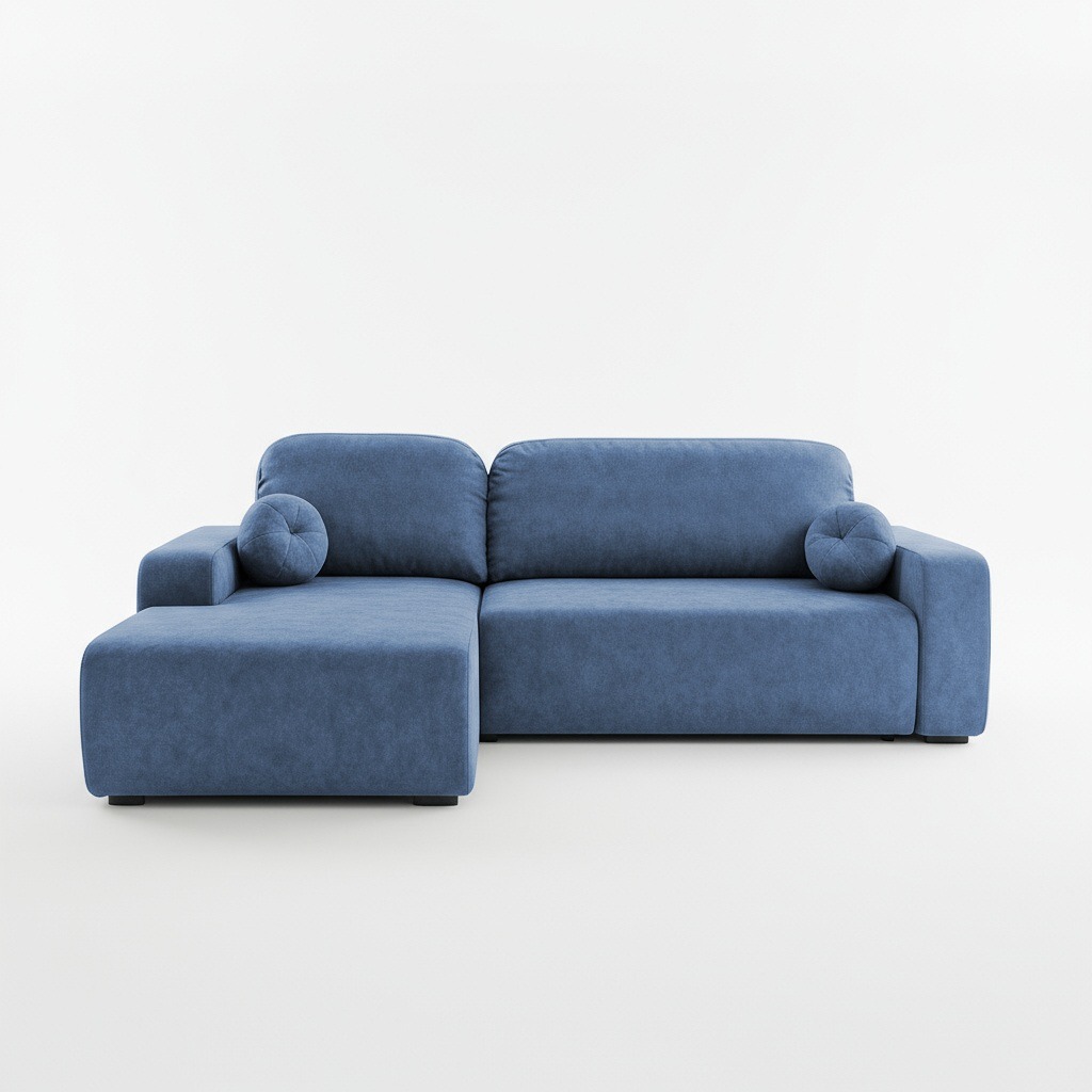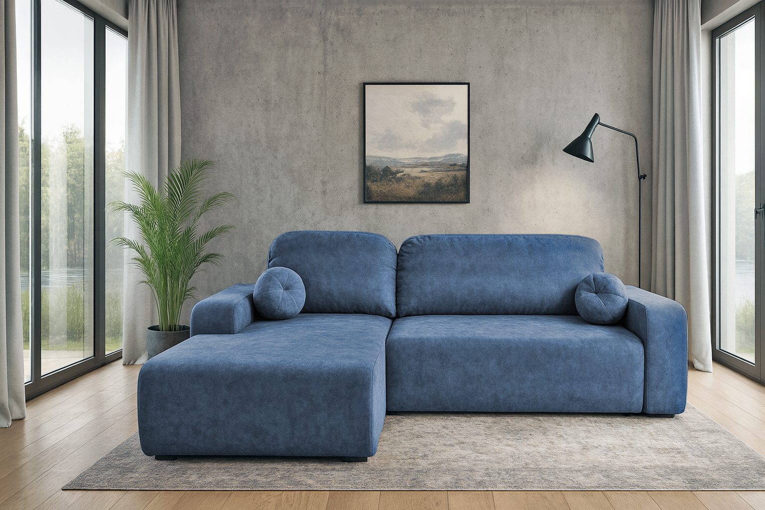 Narożnik z funkcją spania Tori lewy L-kształtny z pojemnikiem na pościel niebieski welur