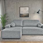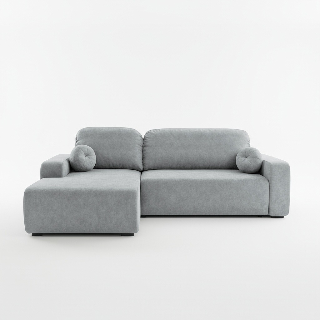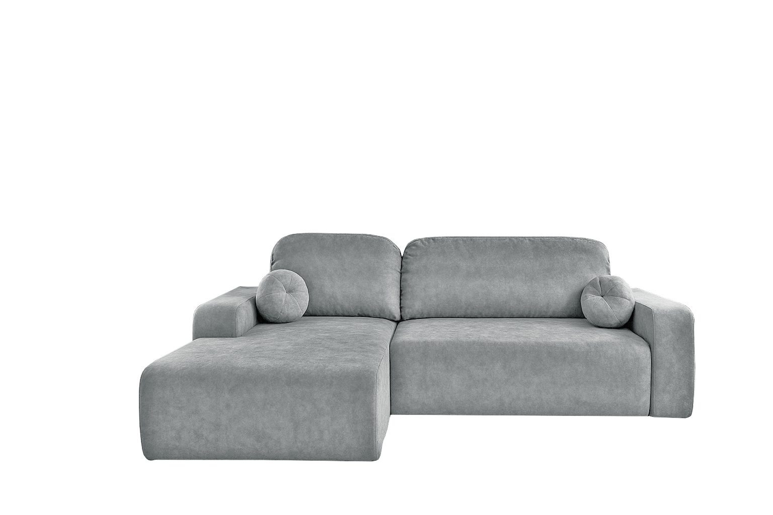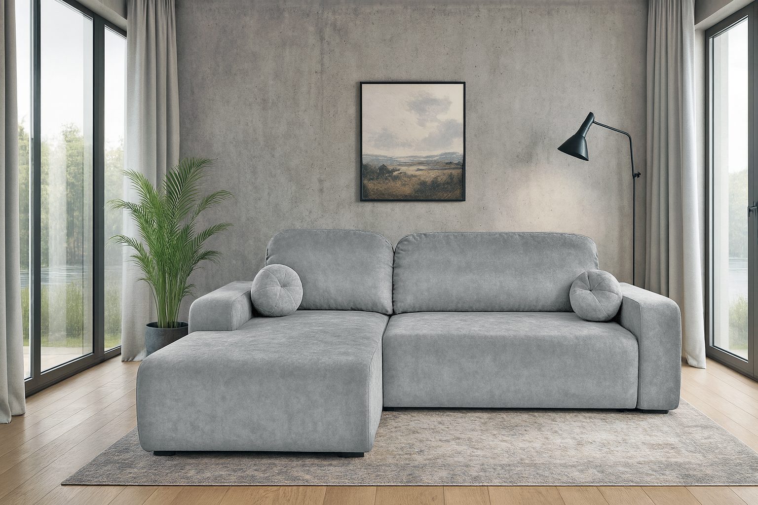 Narożnik z funkcją spania Tori lewy L-kształtny z pojemnikiem na pościel szary welur