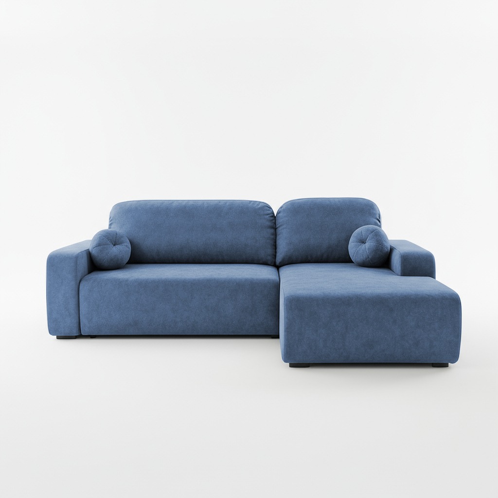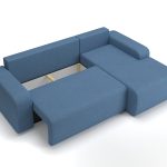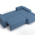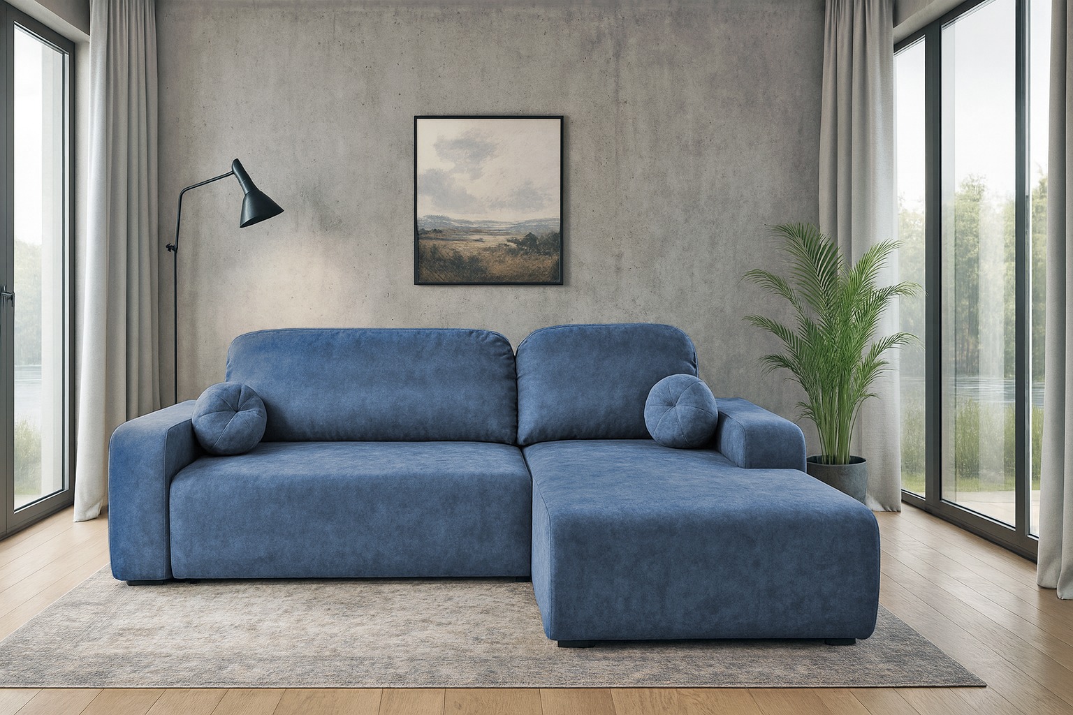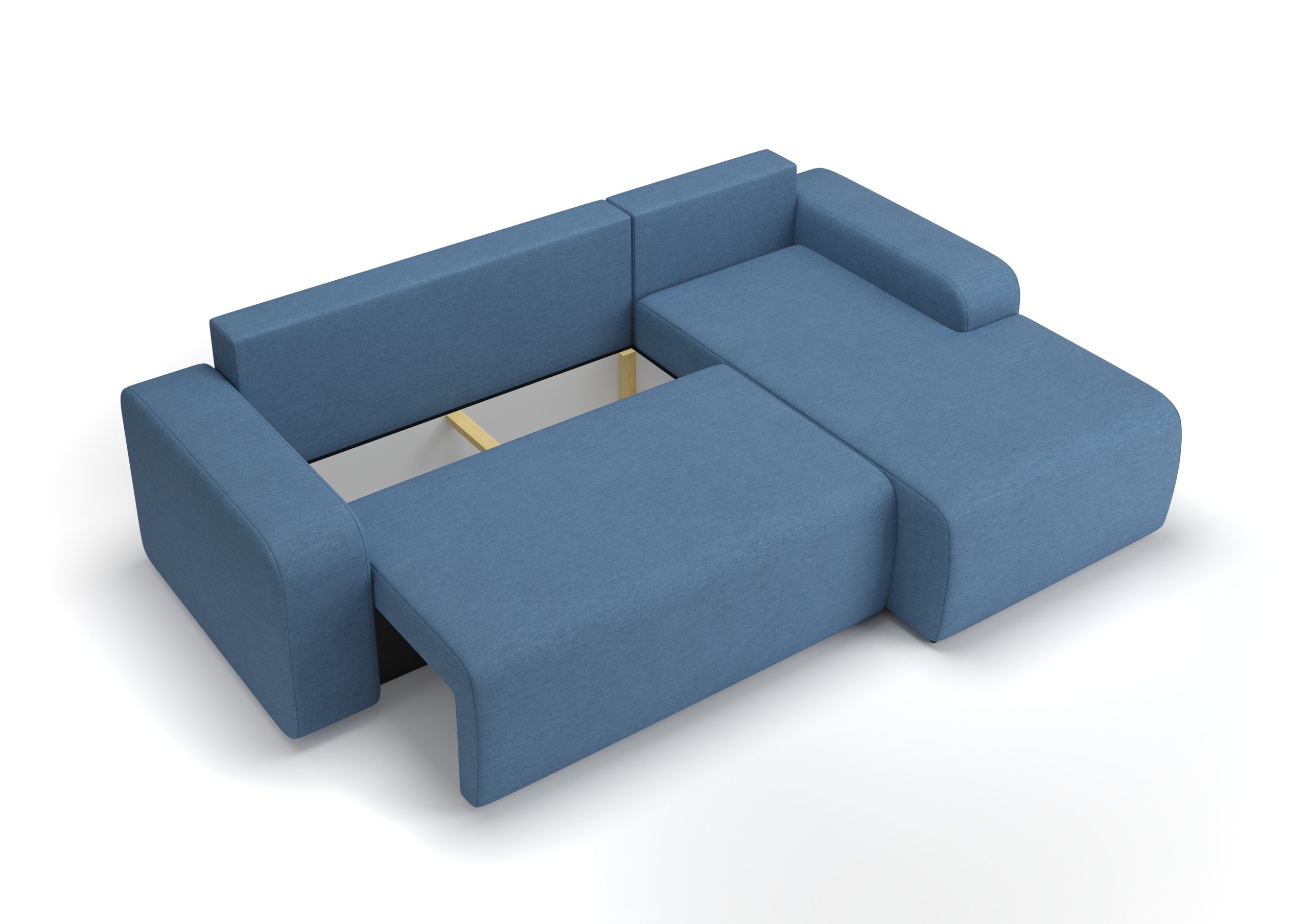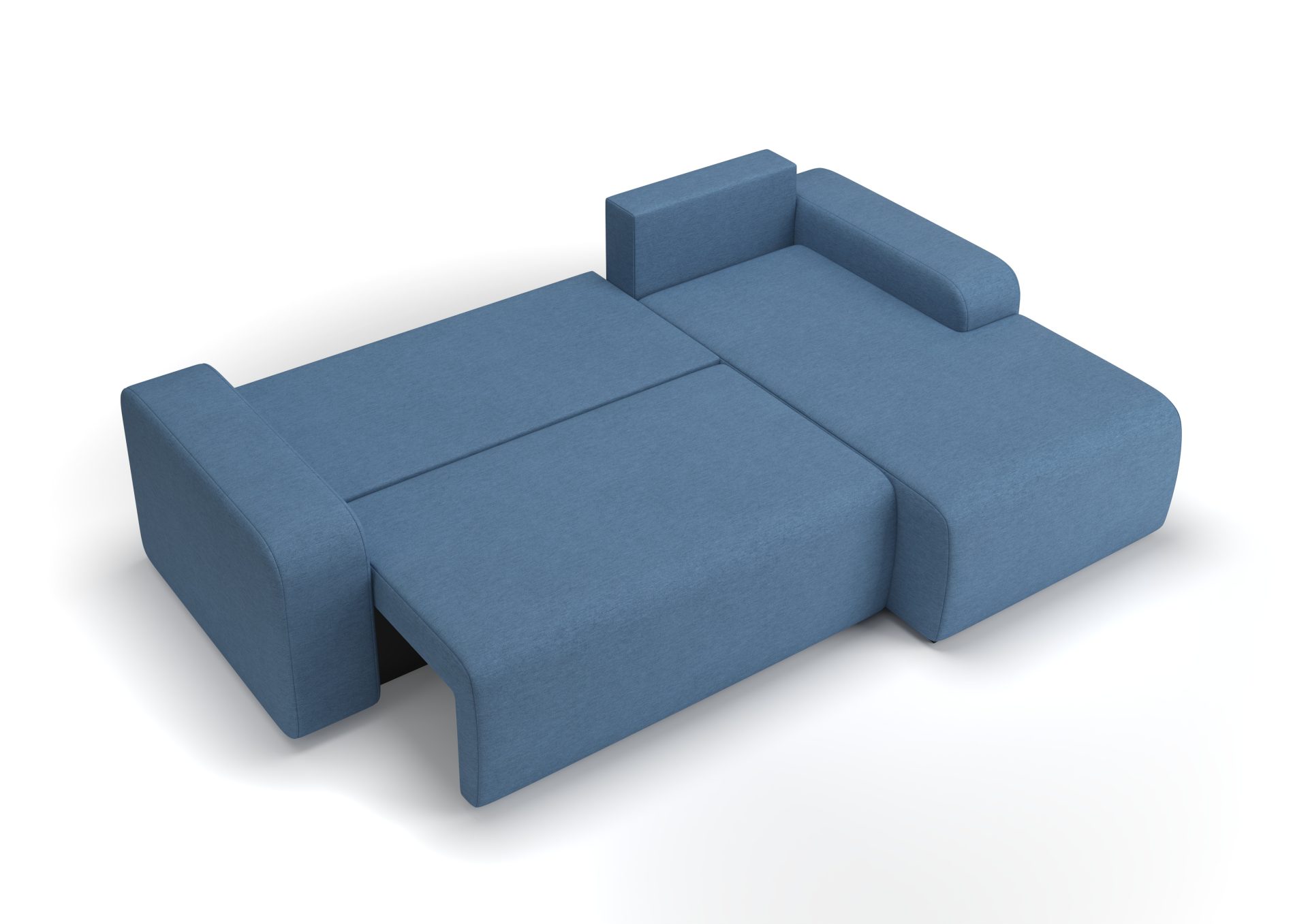 Narożnik z funkcją spania Tori prawy L-kształtny z pojemnikiem na pościel niebieski welur