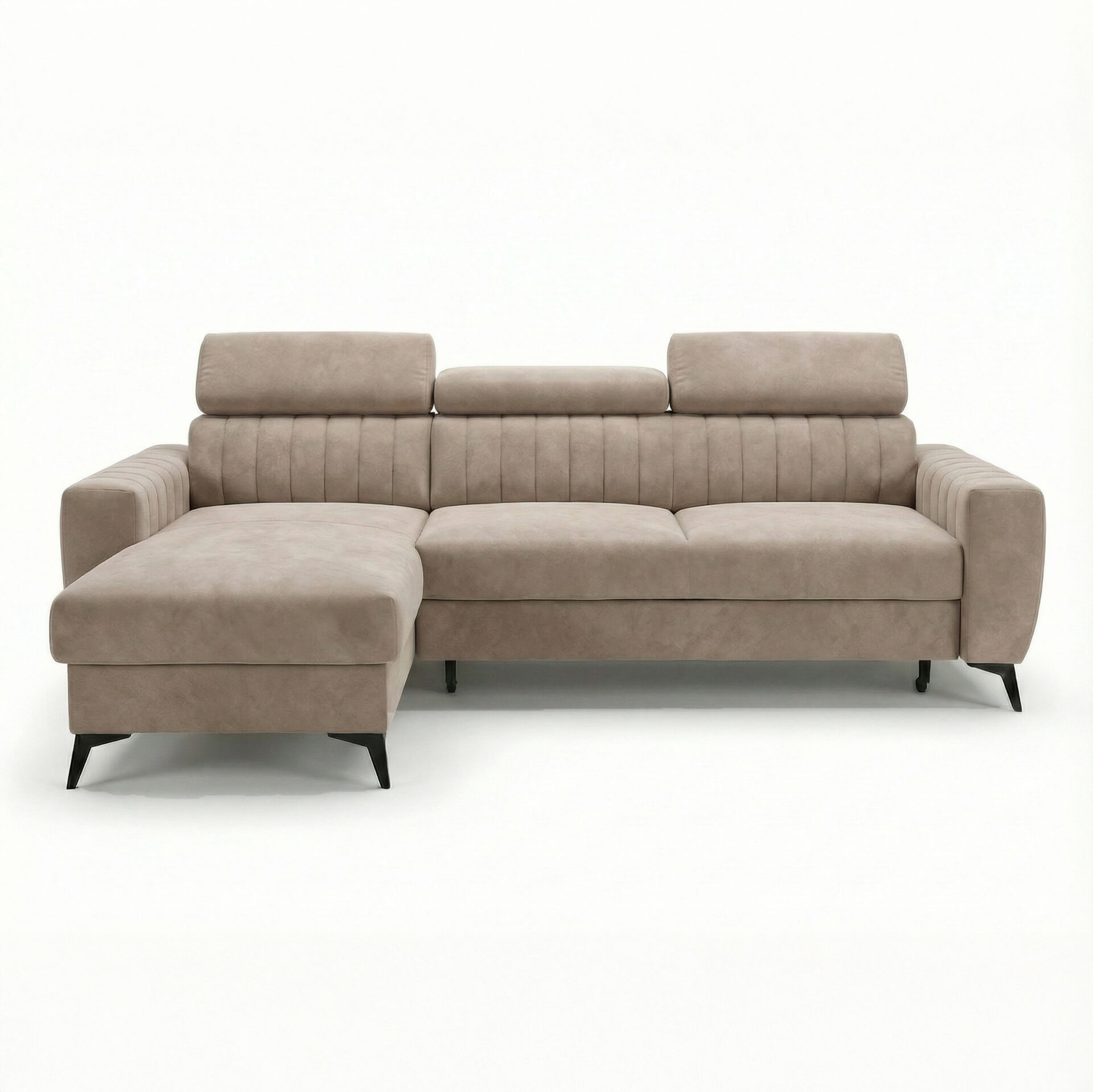 Odkryj luksusowy komfort z narożnikiem Velaro w welurze Vena. Miękka, przyjemna w dotyku tkanina welurowa sprawia, że mebel prezentuje się elegancko i nowocześnie, a wysokie czarne nóżki dodają lekkości całej bryle.