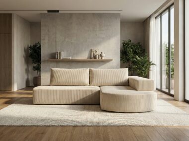 Kremowe narożniki to idealny fundament współczesnych i minimalistycznych aranżacji, ceniony przede wszystkim za swoją wszechstronność. Ich proste formy w połączeniu z ciepłą, jasną tonacją wprowadzają do wnętrza poczucie spokoju i wizualnej lekkości. Jasna tapicerka skutecznie rozprasza naturalne światło, dzięki temu salon staje się jaśniejszy, a sam mebel nie przytłacza pozostałych elementów wyposażenia.