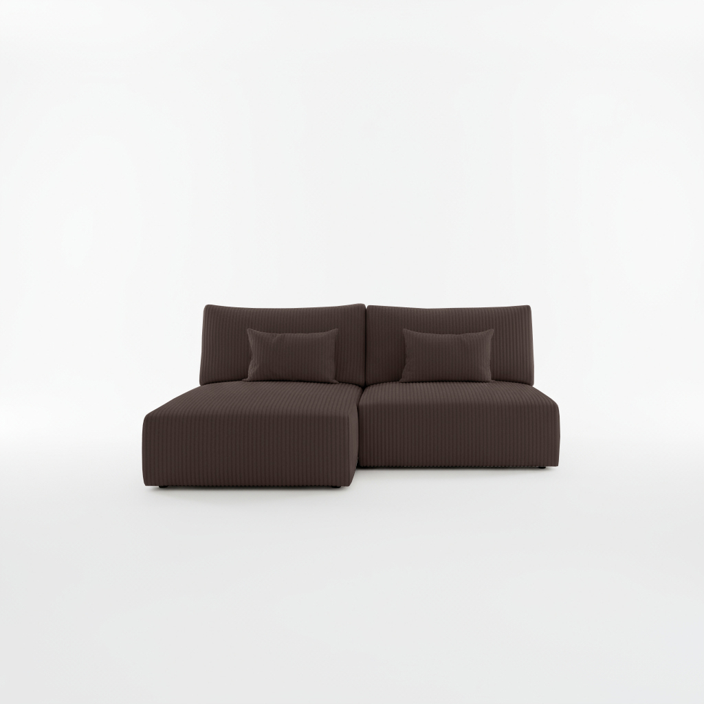 Praktyczny pojemnik ukryty w otomanie pomaga utrzymać porządek w salonie. Można w nim przechować pościel, koce lub sezonowe dekoracje. Wyjątkowa tkanina sztruksowa Poso ma właściwości utrudniające wchłanianie cieczy. Dzięki temu przypadkowo rozlany napój nie stanowi problemu. Jest ona również przyjazna zwierzętom i łatwa w czyszczeniu, co docenią właściciele czworonogów. Ciepły brąz narożnika Modulo pozostanie piękny na długo, nawet przy intensywnym użytkowaniu.