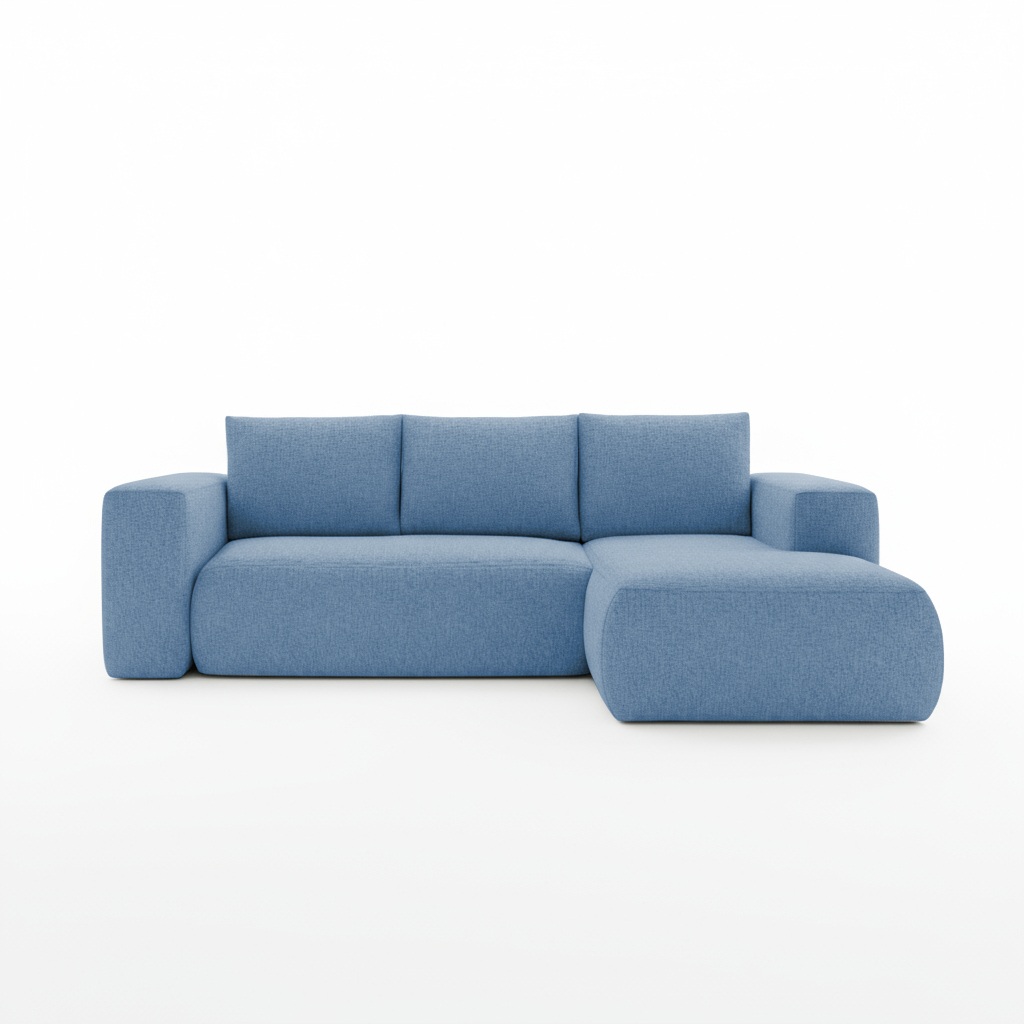 Niebieski narożnik Lambi tworzy w domu komfortową strefę do życia i odpoczynku. Staje się ulubionym miejscem spotkań oraz chwil relaksu po długim dniu.