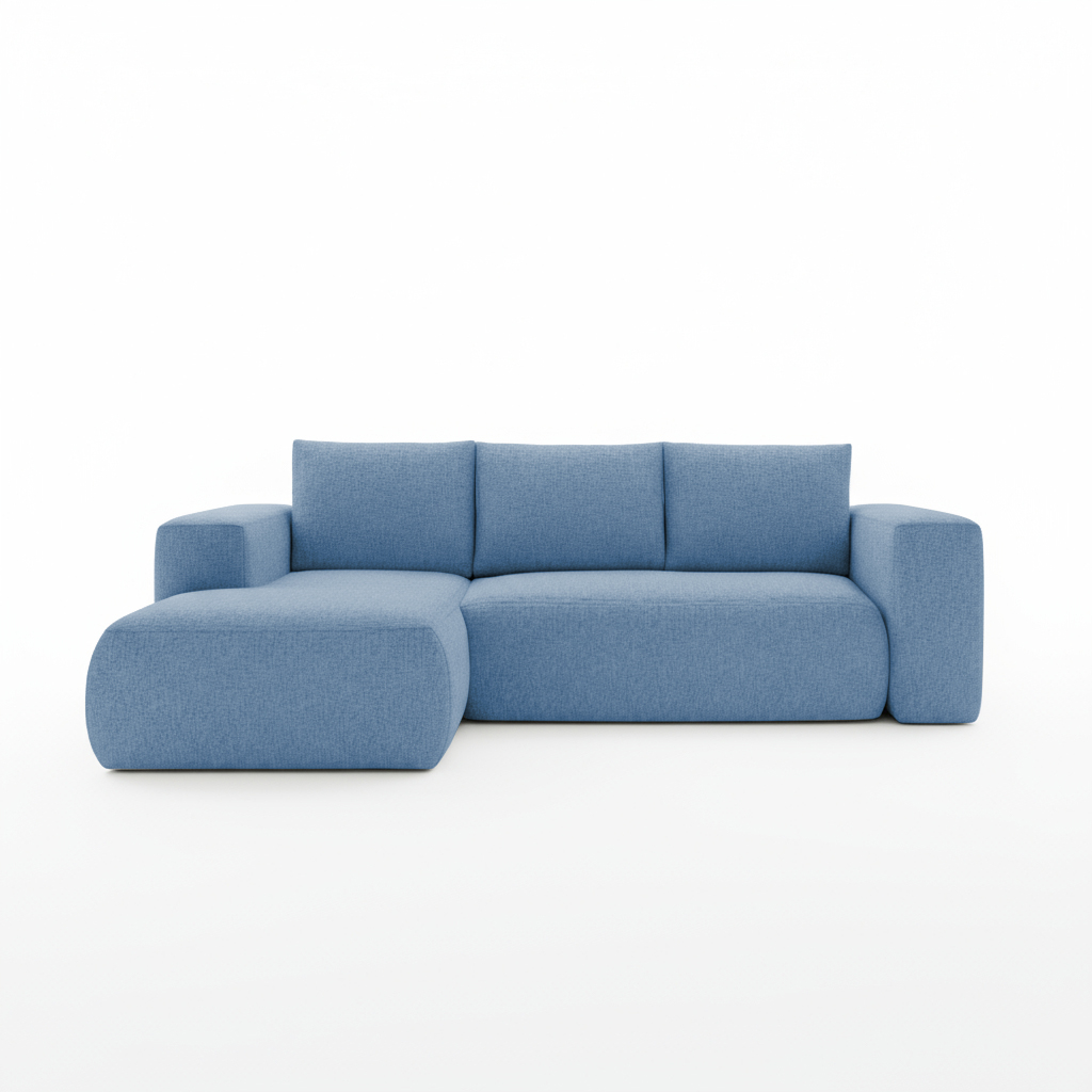 Niebieski narożnik Lambi wnosi do domu atmosferę jasności i subtelnej elegancji. Jego przytulna forma staje się centralnym punktem rodzinnego życia. To idealne miejsce na wspólne wieczory z książką lub ulubionym serialem.