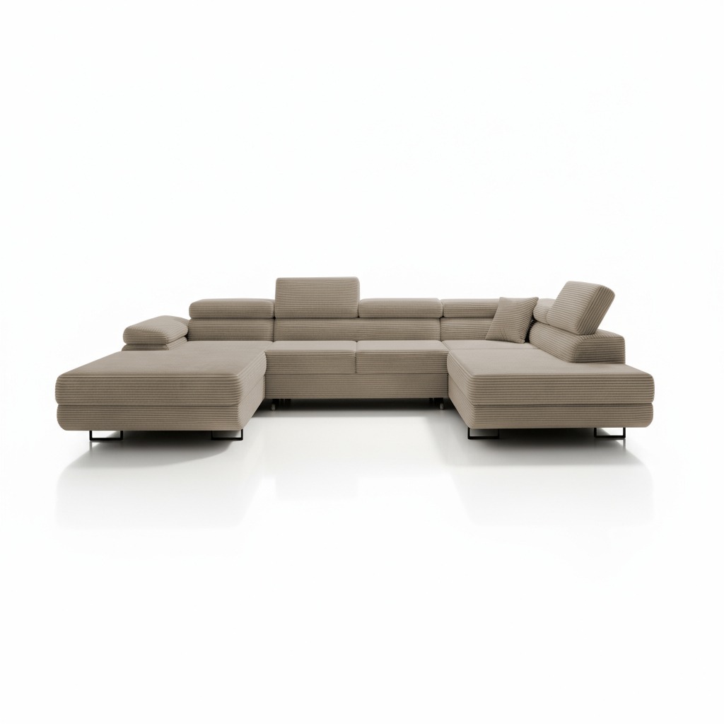 Mebel wyposażono w intuicyjną funkcję spania. Rozkładanie za pomocą automatu Delfin pozwala w kilka chwil przygotować wygodne miejsce dla niespodziewanych gości. Co ważne, narożnik posiada także pojemny schowek na pościel. Można w nim dyskretnie przechować dodatkowe koce i poduszki, pomagając utrzymać porządek w salonie. Miękki sztruks Poso jest nie tylko przyjemny w dotyku. Jego specjalne właściwości ułatwiają codzienne użytkowanie. Tkanina utrudnia wchłanianie rozlanych płynów i jest przyjazna zwierzętom. Pozwala to na beztroski relaks w towarzystwie pupila.