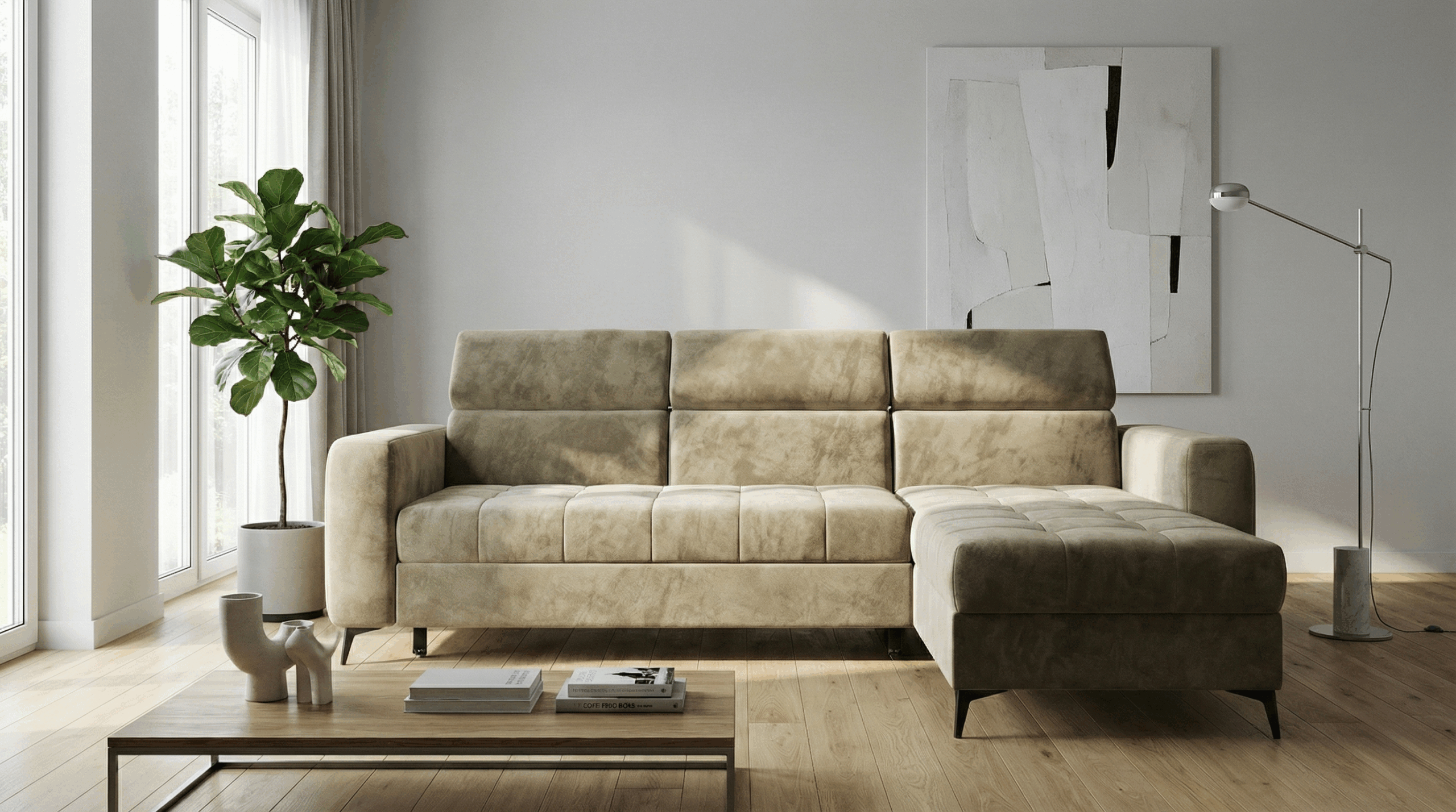 Beżowy narożnik Filo staje się centrum domowego życia. To przytulna przestrzeń do relaksu po długim dniu i spotkań w gronie najbliższych, która każdego dnia zachwyca komfortem.
