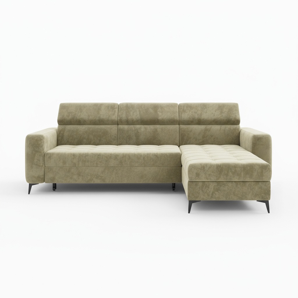 Komfort codziennego wypoczynku zapewniają regulowane zagłówki. Dzięki nim każdy z domowników może dopasować oparcie do swoich potrzeb podczas czytania książki lub wieczornego seansu filmowego. Siedzisko wypełnione sprężynami falistymi oraz pianką jest sprężyste i odporne na odkształcenia. Dlatego narożnik zachowuje swój doskonały wygląd na długie lata.
