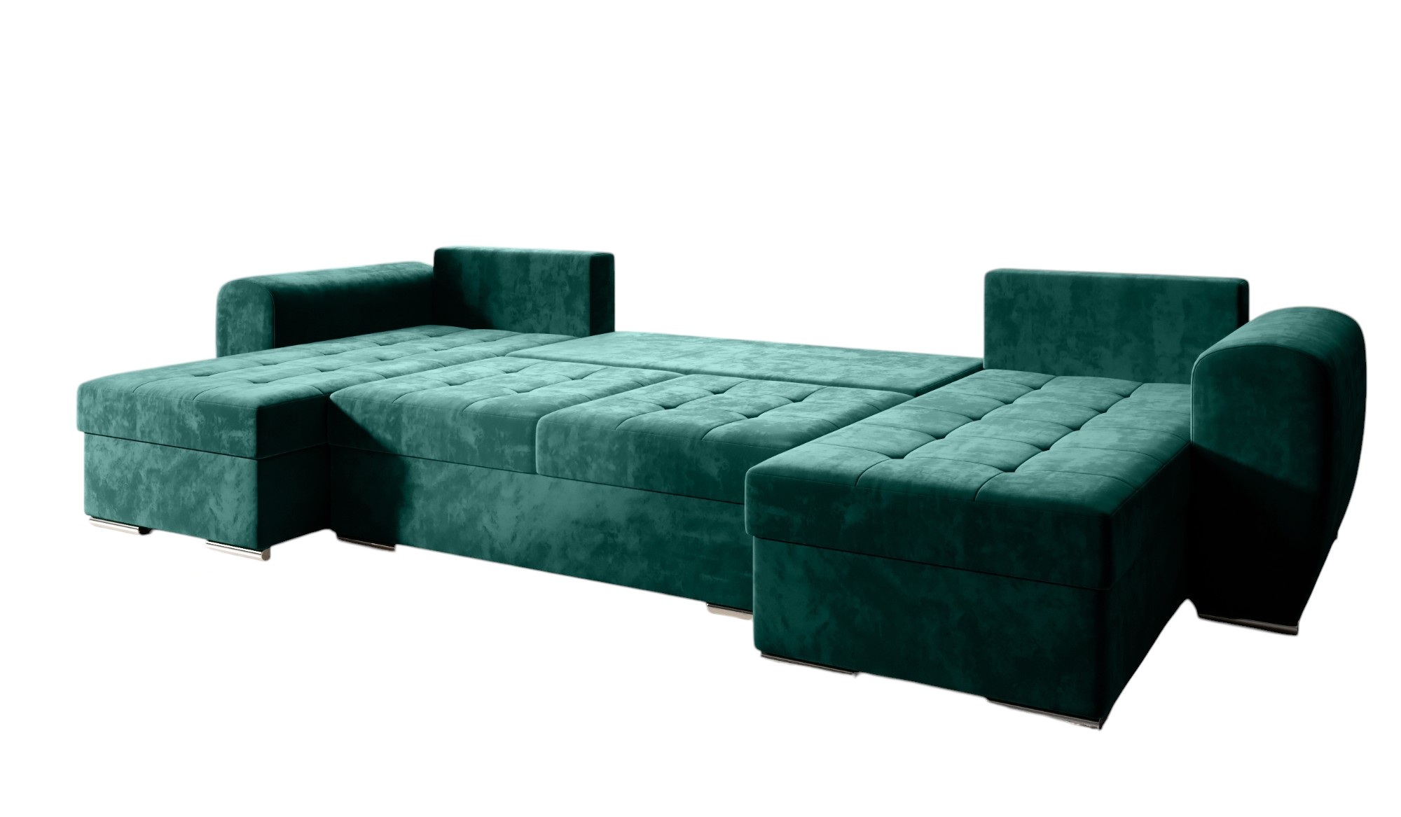 Model wyposażono w intuicyjną funkcję spania. Rozkładanie za pomocą automatu DL jest szybkie i nie wymaga wysiłku. W ten sposób narożnik zmienia się w obszerne łóżko dla niespodziewanych gości. Co ważne, mebel posiada praktyczny pojemnik na pościel. Pomaga on utrzymać porządek w salonie, dyskretnie chowając koce czy dodatkowe poduszki. Tapicerowany tył pozwala z kolei swobodnie ustawić narożnik w dowolnym miejscu, nawet na środku pokoju.