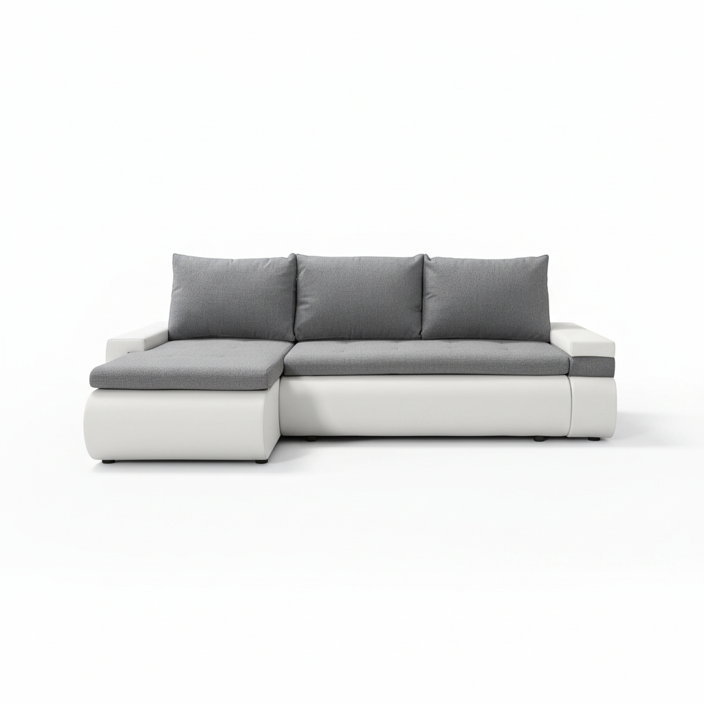 Narożnik Manhattan jest doskonale przygotowany na wizytę gości. Posiada intuicyjną funkcję spania rozkładaną systemem DL. Wystarczy kilka prostych ruchów, aby zamienić go w wygodne łóżko dla dwóch osób. W ten sposób zyskujemy dodatkowe miejsce noclegowe. Praktyczny pojemnik pod siedziskiem idealnie sprawdzi się do przechowywania pościeli lub ciepłych koców, ułatwiając utrzymanie porządku.