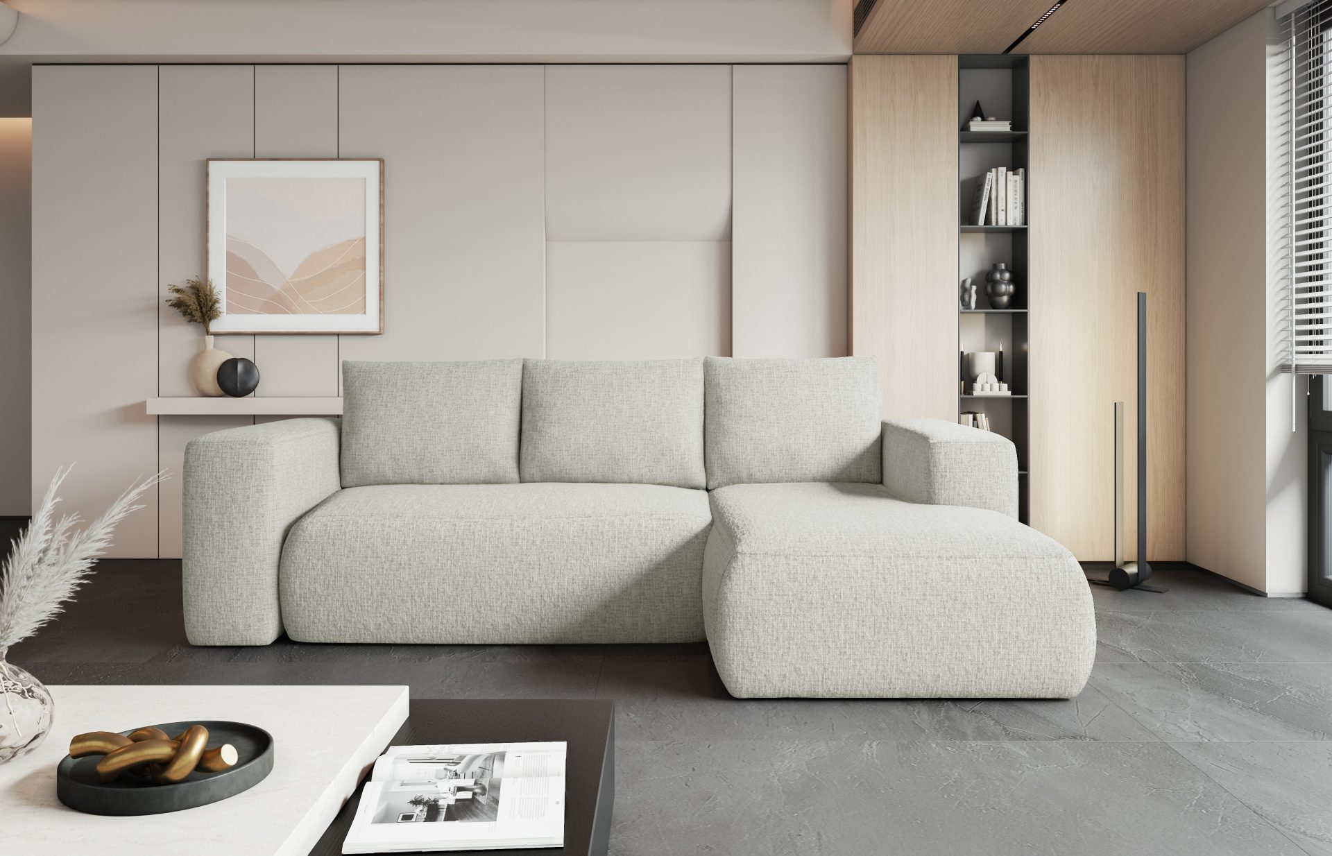 Kremowy narożnik Lambi to mebel stworzony z myślą o komforcie i beztroskim relaksie. Zaprojektowany, by stać się centrum domowego życia, gdzie rodzina i przyjaciele mogą wspólnie spędzać czas. Jego subtelna elegancja i funkcjonalność sprawiają, że salon staje się przytulnym azylem na lata.