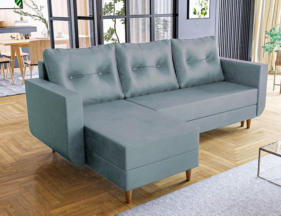 Mebel oferuje także praktyczne rozwiązania na co dzień. Posiada intuicyjną w obsłudze funkcję spania typu DL. Dzięki niej w kilka chwil można przygotować wygodne miejsce do spania dla gości. Pod siedziskiem ukryto z kolei pojemny schowek na pościel. Pozwala on utrzymać porządek i dyskretnie przechować dodatkowe koce lub poduszki.
