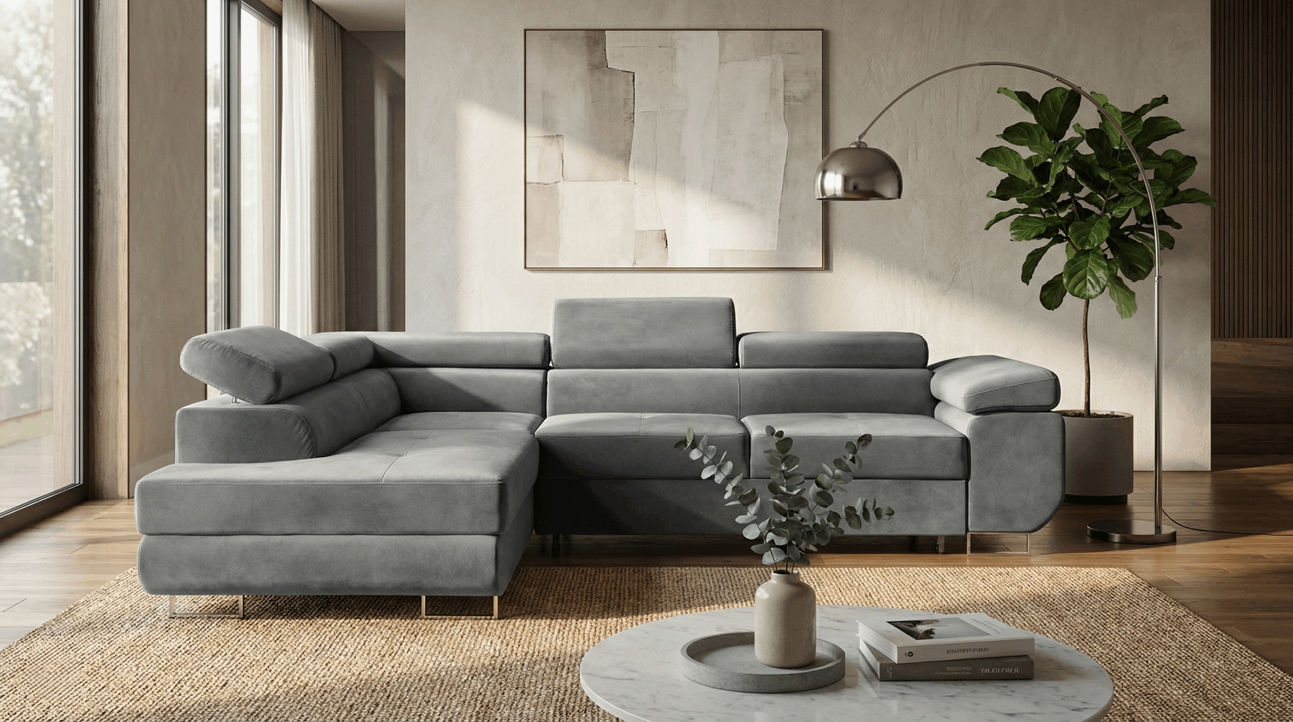 Szary narożnik Avesta wnosi do domu atmosferę ponadczasowej elegancji. Jego neutralny odcień uspokaja zmysły, a przemyślane funkcje ułatwiają codzienne życie. To mebel, który zaprasza do wspólnego spędzania czasu i prawdziwego odpoczynku w pięknym otoczeniu.