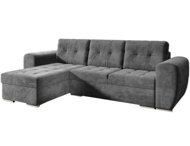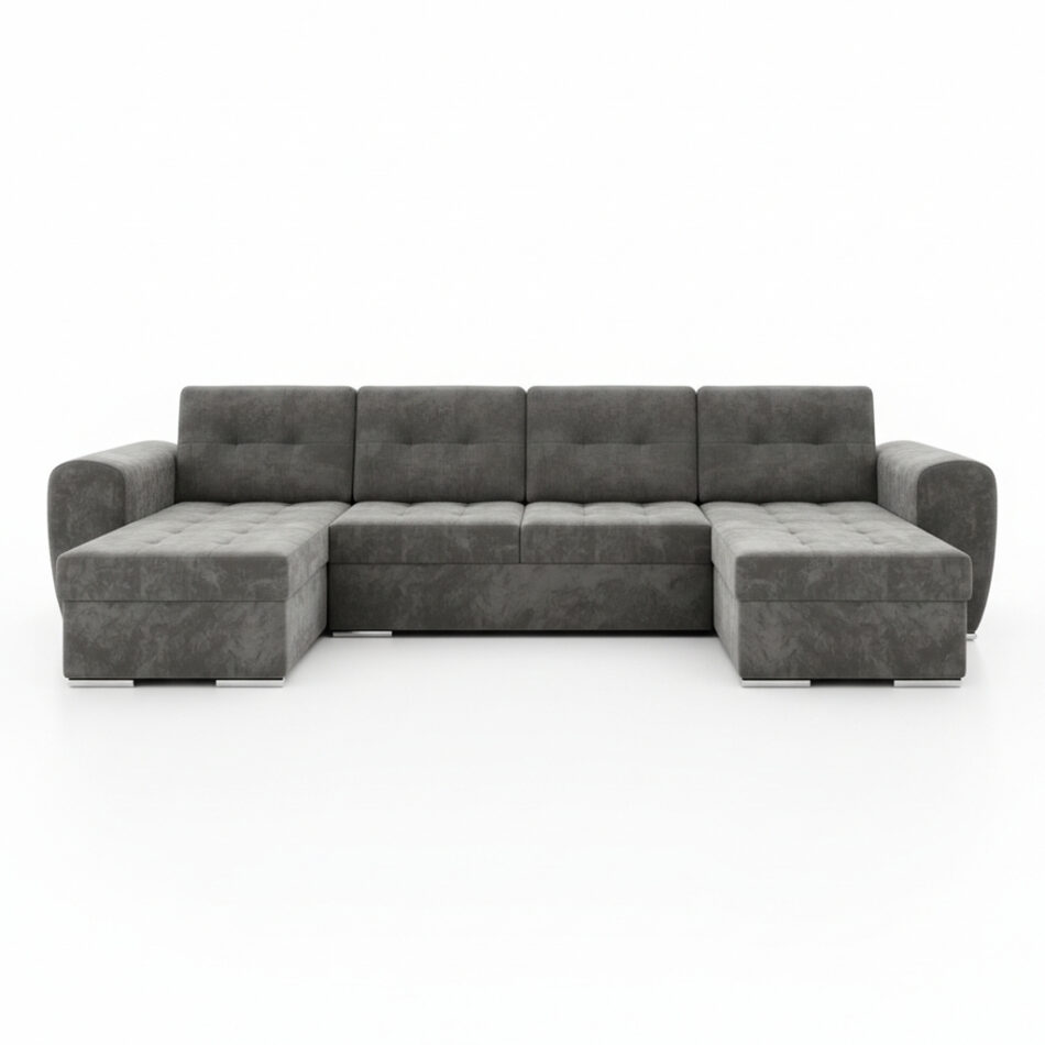 Narożnik Bari U jest niezwykle funkcjonalny. Posiada dużą funkcję spania, która zmienia salon w komfortową sypialnię dla gości. Rozkładanie za pomocą automatu DL jest płynne i nie wymaga użycia siły. Wystarczy kilka prostych ruchów, aby przygotować wygodne miejsce do snu. Dodatkowym atutem jest obszerny pojemnik na pościel. Można w nim przechowywać kołdry, poduszki lub sezonowe tekstylia, pomagając w utrzymaniu porządku w salonie. Tapicerowany tył mebla pozwala na ustawienie go w dowolnym miejscu, nawet na środku pokoju.