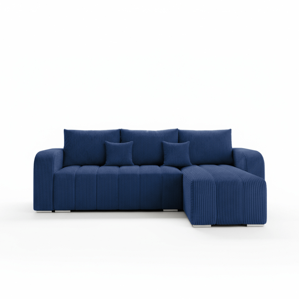 Szlachetny granatowy kolor i miękka sztruksowa faktura sprawiają, że wnętrze staje się bardziej przytulne. Narożnik Pufetto to mebel, który tworzy w domu idealną przestrzeń do relaksu i wspólnego spędzania czasu.