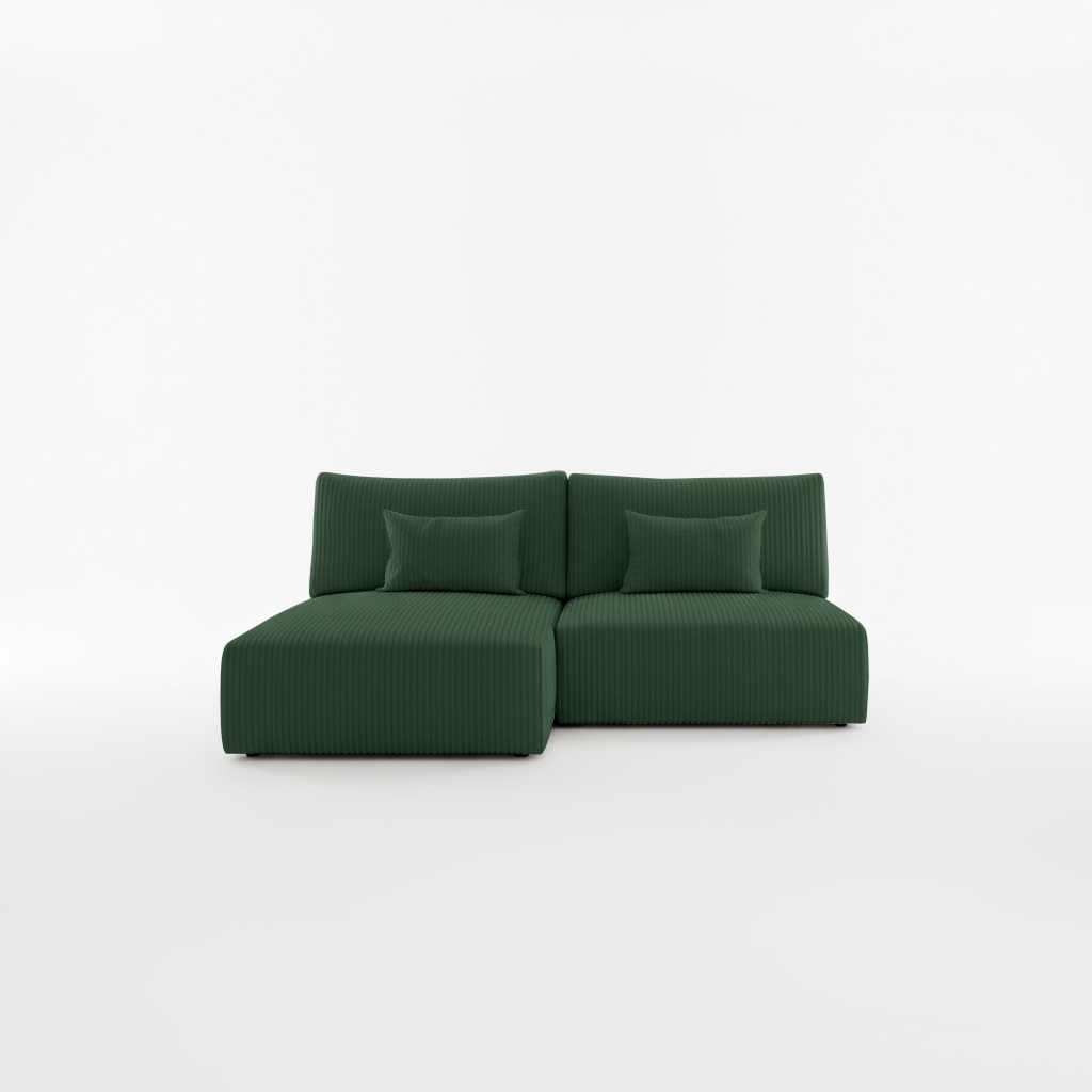 Dzięki przemyślanym funkcjom i wyjątkowej barwie, butelkowozielony narożnik Modulo staje się centrum domowego życia, pełnego komfortu i stylu.