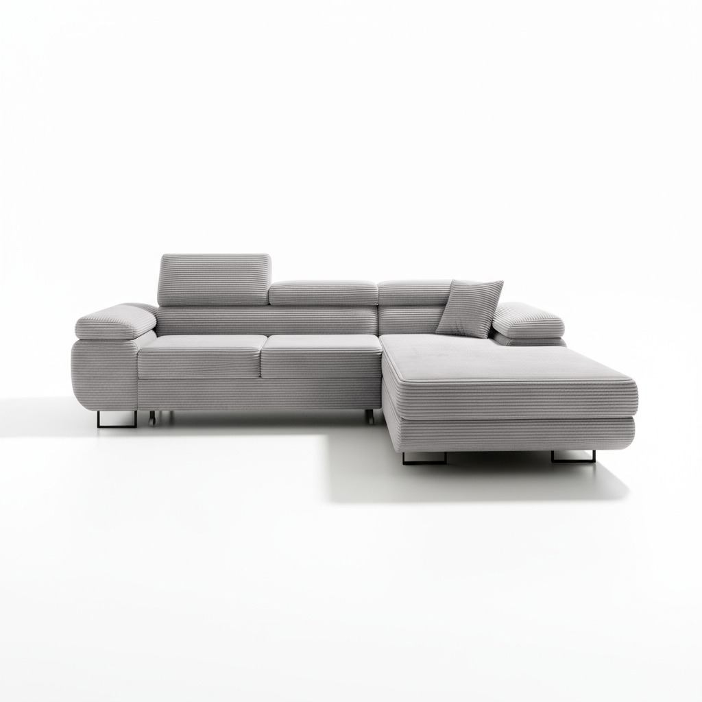 Astorp L został zaprojektowany z myślą o codziennym komforcie. Siedzisko wypełniono sprężynami falistymi i elastyczną pianką. Zapewnia to optymalną wygodę podczas każdego odpoczynku. Co ważne, regulowane zagłówki pozwalają idealnie dopasować oparcie do własnych potrzeb. Jest to szczególnie przydatne podczas wieczornego seansu filmowego lub czytania książki. Narożnik wyposażono również w intuicyjną funkcję spania. Rozkładanie za pomocą automatu Delfin jest szybkie i nie wymaga wysiłku. Wewnątrz znajduje się także praktyczny pojemnik na pościel. Ułatwia on utrzymanie porządku w salonie.