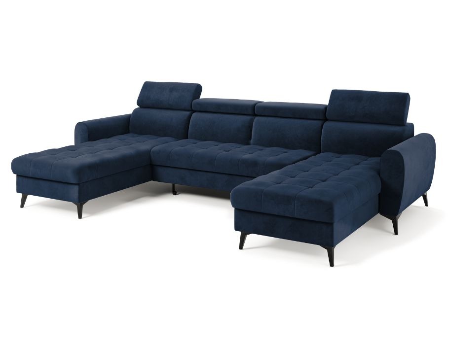 Narożnik z funkcją spania Bjorn U-kształtny z pojemnikiem na pościel granatowy welur