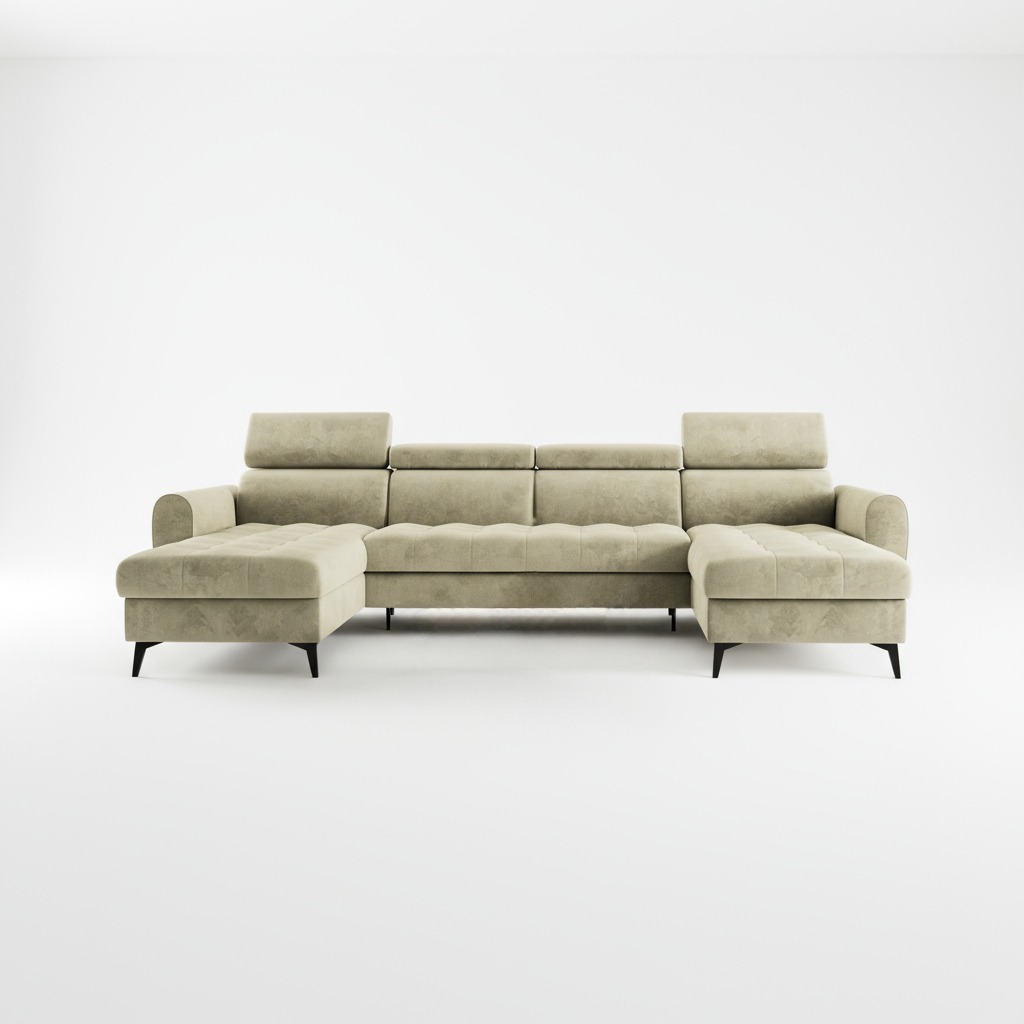 Narożnik Bjorn w kształcie U – nowoczesny narożnik z funkcją spania i pojemnikami na pościel
