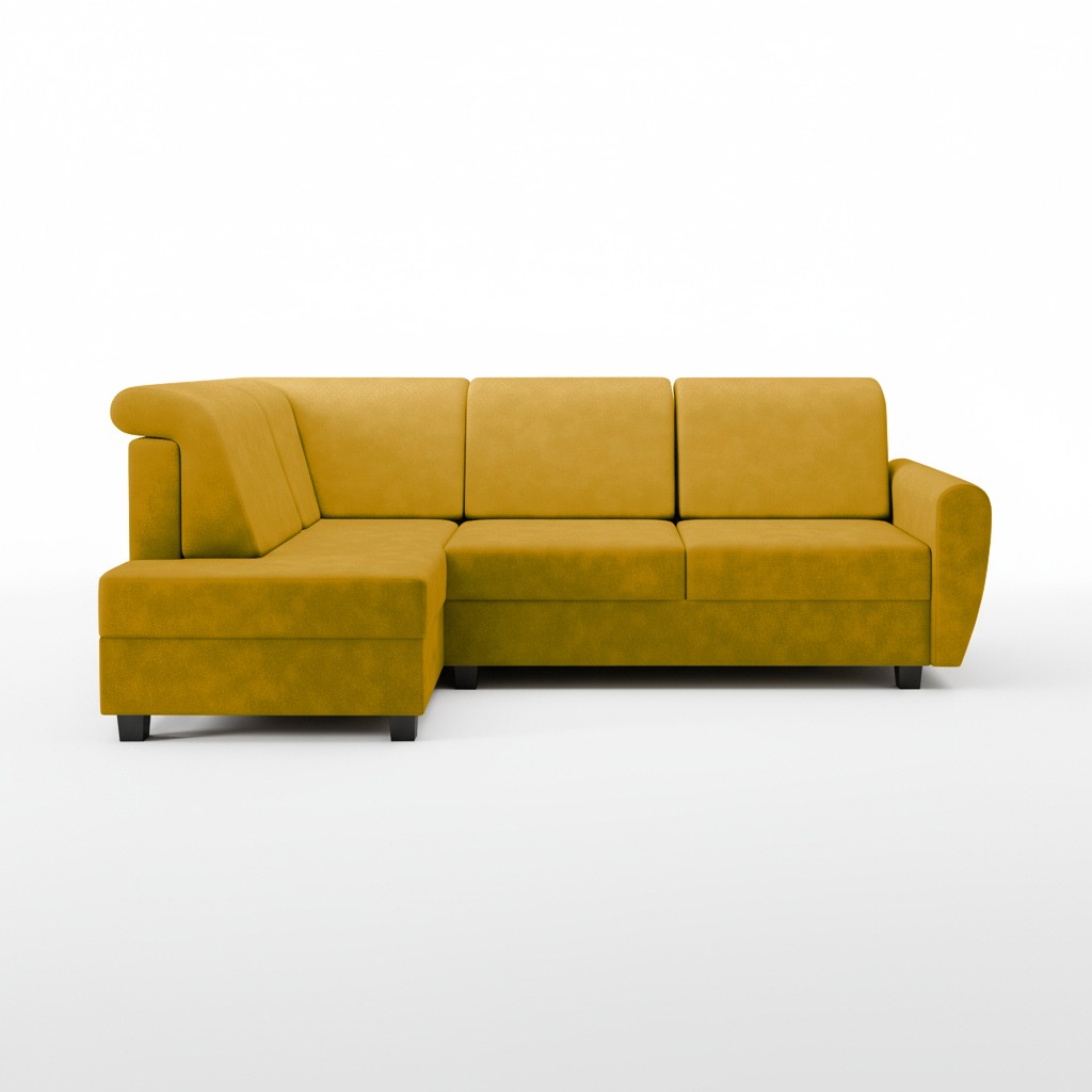 Narożnik Milo jest także niezwykle praktyczny na co dzień. Posiada intuicyjną funkcję spania, idealną na wizytę gości. Rozkładanie za pomocą automatu DL jest proste i nie wymaga dużej siły. Wewnątrz ukryto pojemny schowek na pościel lub dodatkowe koce. Dzięki temu salon pozostaje zawsze uporządkowany. Musztardowy kolor tapicerki zachowa swój wygląd na dłużej. Zastosowana tkanina Soro utrudnia wchłanianie cieczy. Jest też przyjazna zwierzętom, co ułatwia utrzymanie czystości przy pupilach.