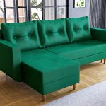Butelkowozielony narożnik Baldur wprowadza do wnętrza klasyczną elegancję w nowoczesnym wydaniu.