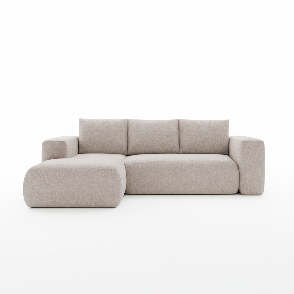 Delikatny beżowy narożnik Lambi sprawia, że wnętrze staje się bardziej przytulne i pełne światła. To mebel, który zaprasza do odpoczynku i tworzy ciepłą, domową atmosferę każdego dnia.