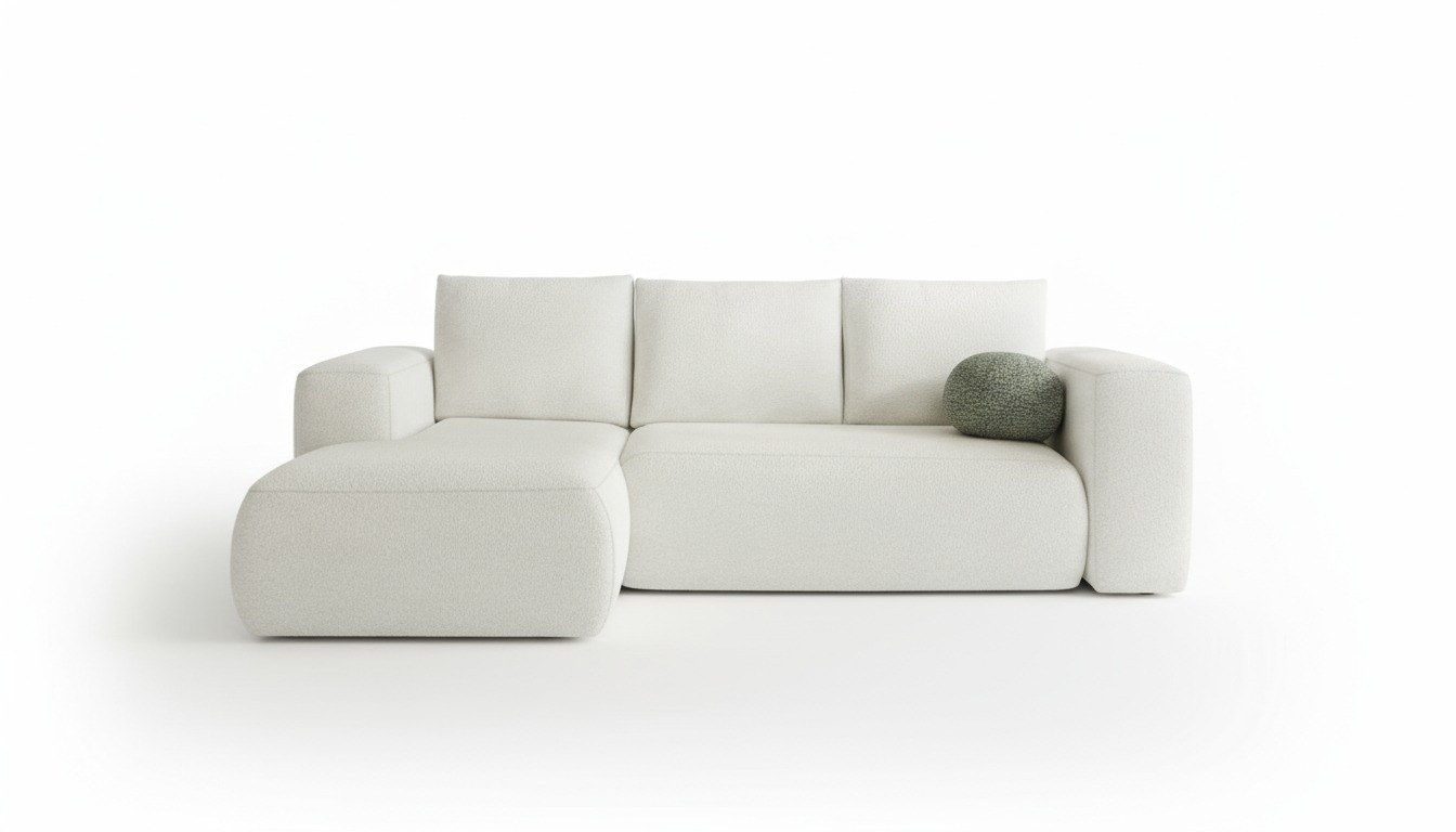 Szlachetna tkanina boucle odznacza się pięknem i wyjątkową funkcjonalnością. Co ważne, materiał jest przyjazny zwierzętom. Pozwala to cieszyć się wspólnymi chwilami z psem lub kotem bez obaw o zaciągnięcia. Specjalna powłoka utrudnia wchłanianie rozlanych płynów. Z kolei funkcja łatwego czyszczenia wodą sprawia, że utrzymanie sofy w czystości jest bardzo proste. Beżowy narożnik Lambi to zatem wybór świadomy i praktyczny.
