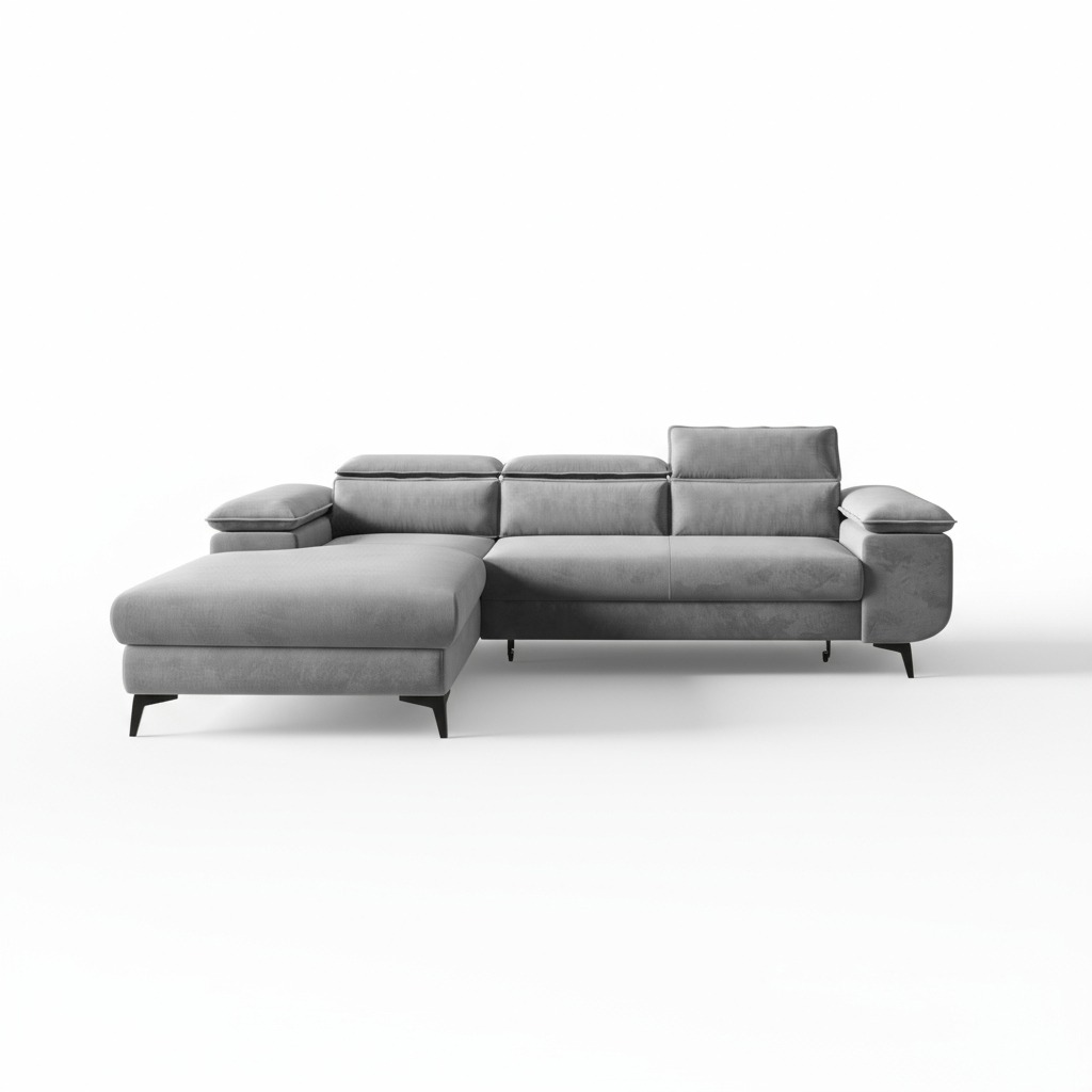 Oto szary narożnik Flat, który wyróżnia się szlachetną prostotą i welurową tkaniną.
