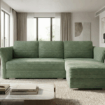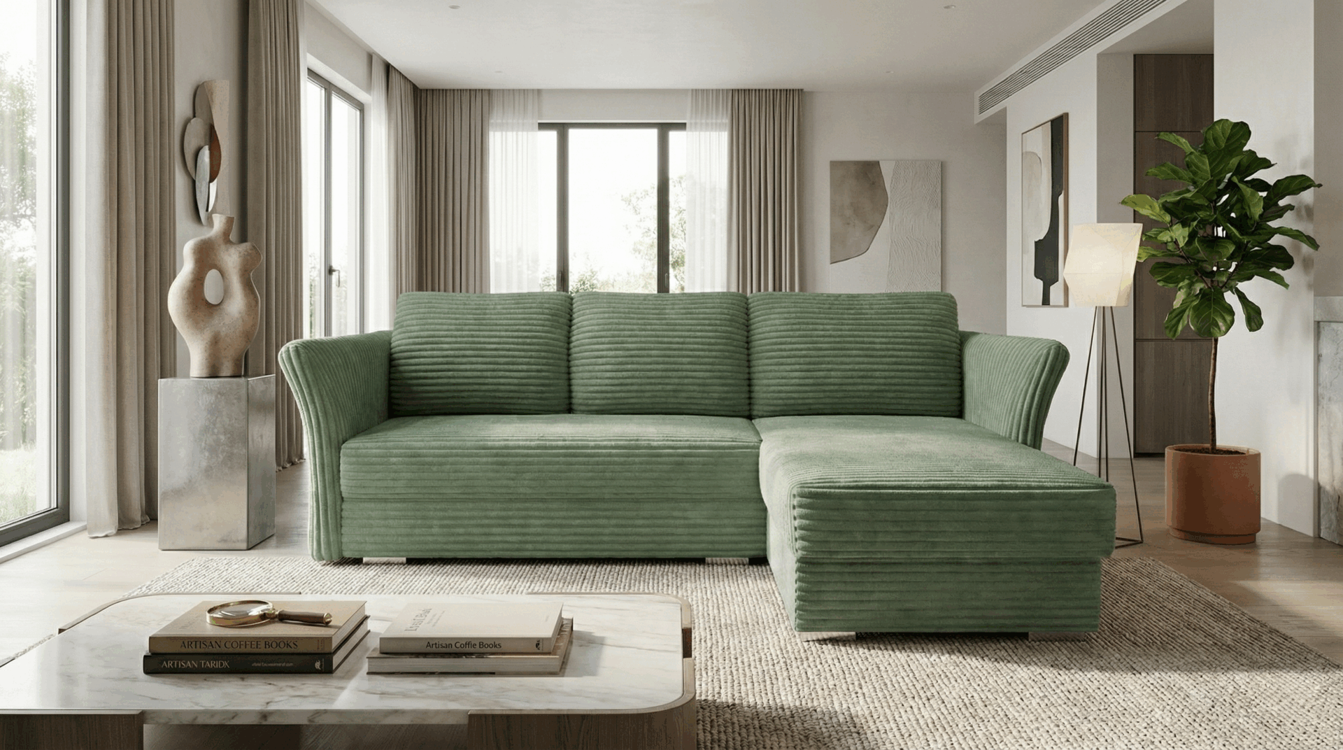 Zielony narożnik Merino staje się sercem domowego życia. Wprowadza do wnętrza świeżość, a jego funkcjonalność czyni codzienność prostszą i przyjemniejszą. To mebel, który zaprasza do wspólnego spędzania czasu w pięknej oraz wygodnej przestrzeni.