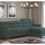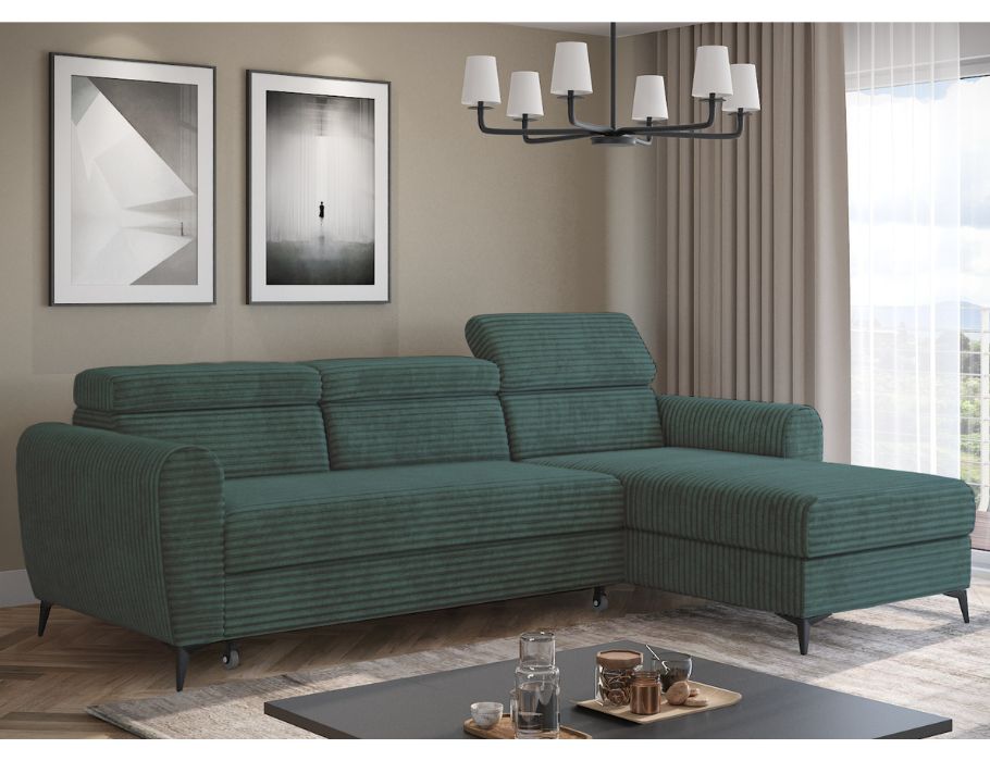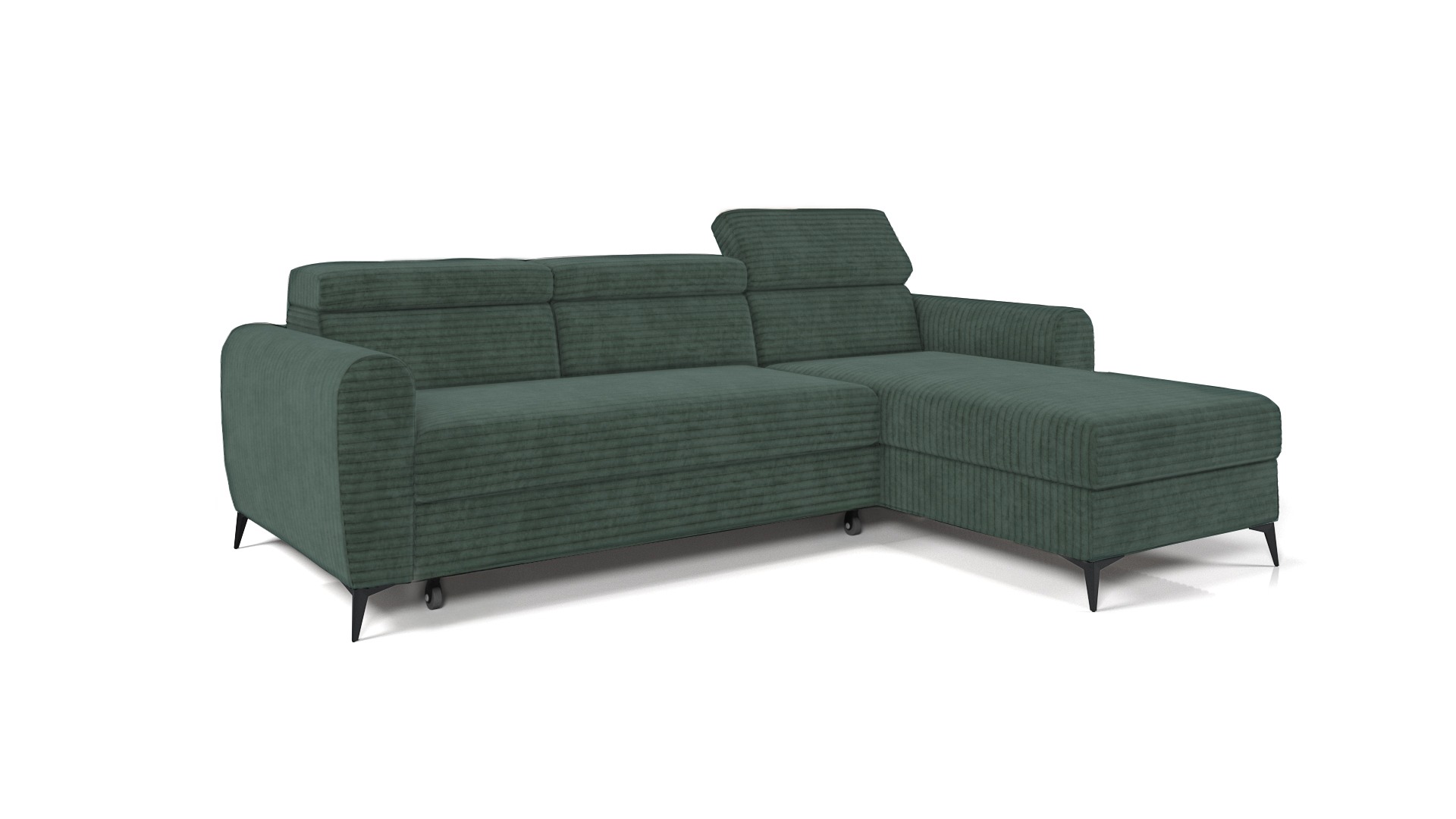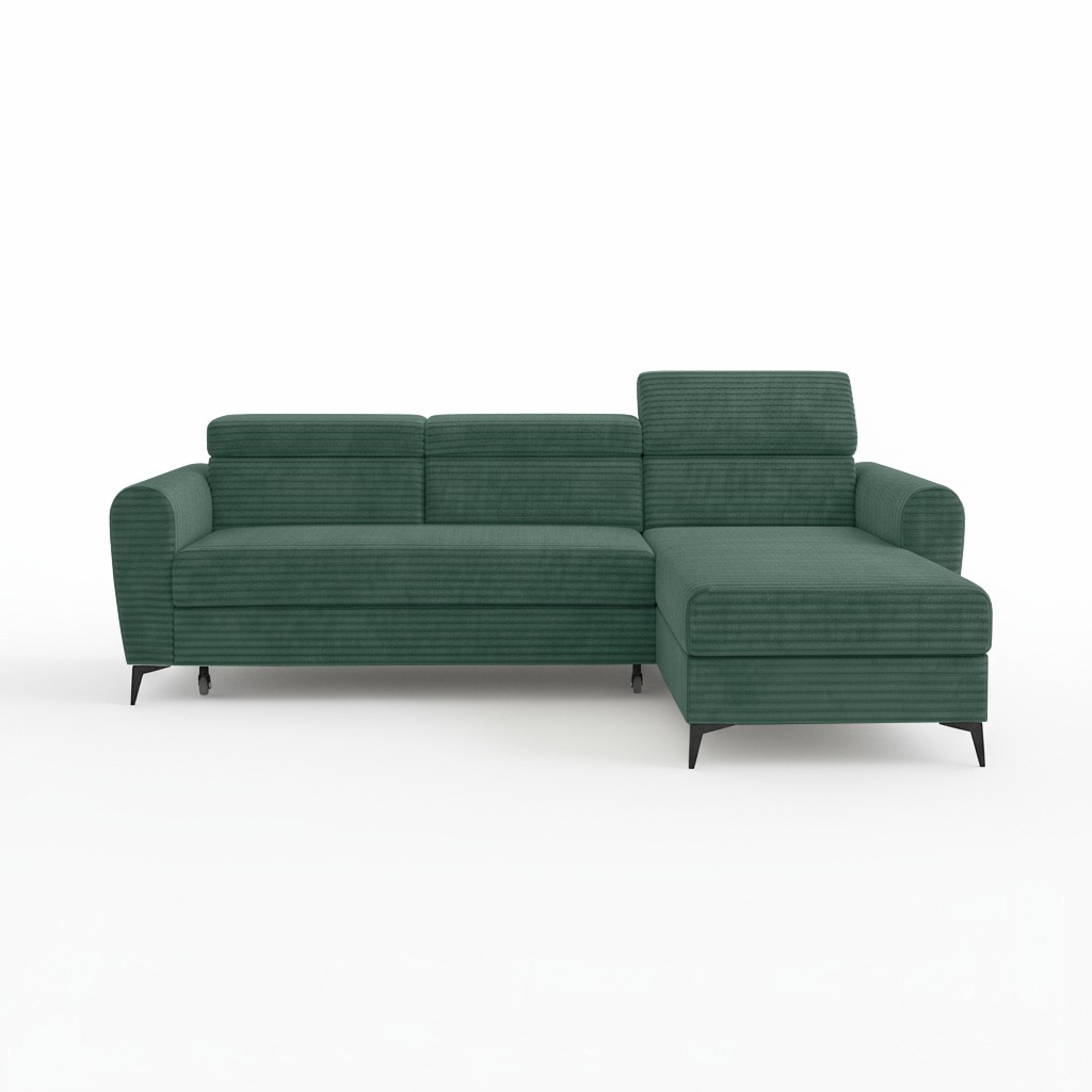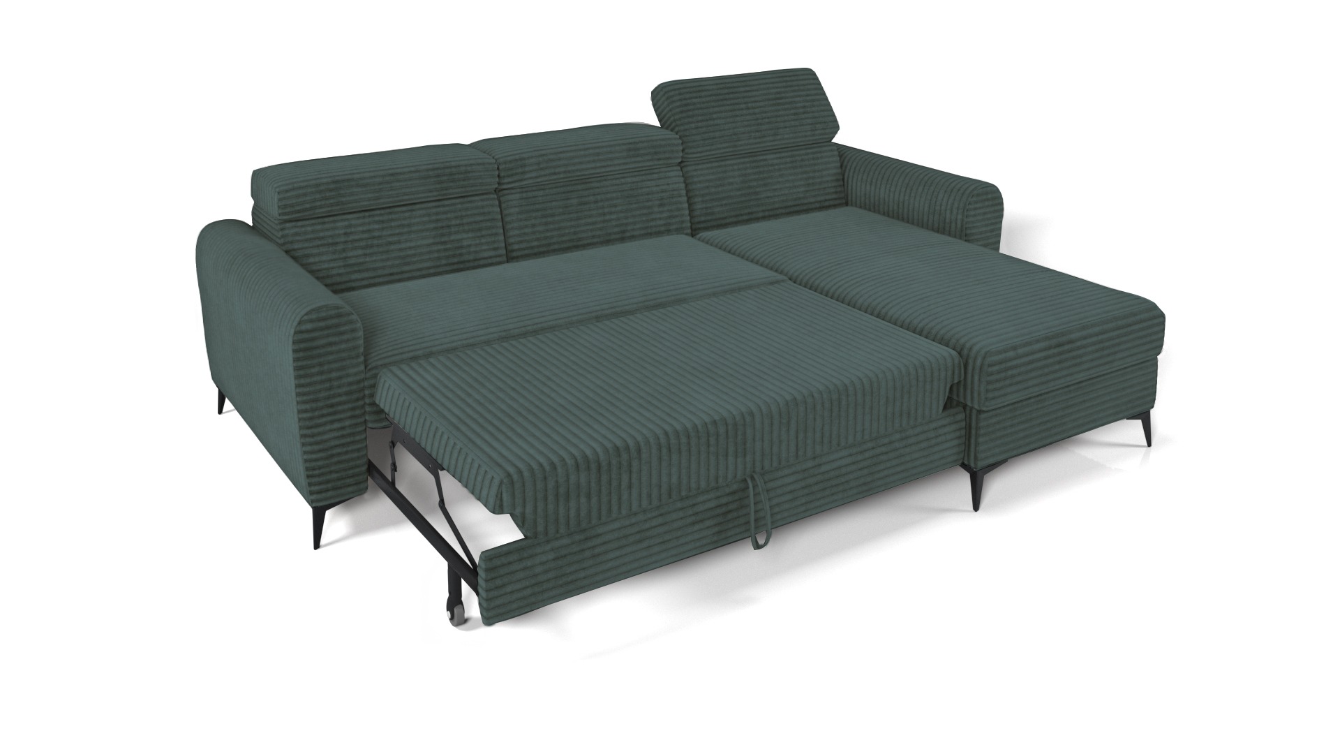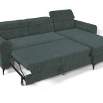 Narożnik z funkcją spania Bjorn uniwersalny L-kształtny z pojemnikiem na pościel zielony sztruks