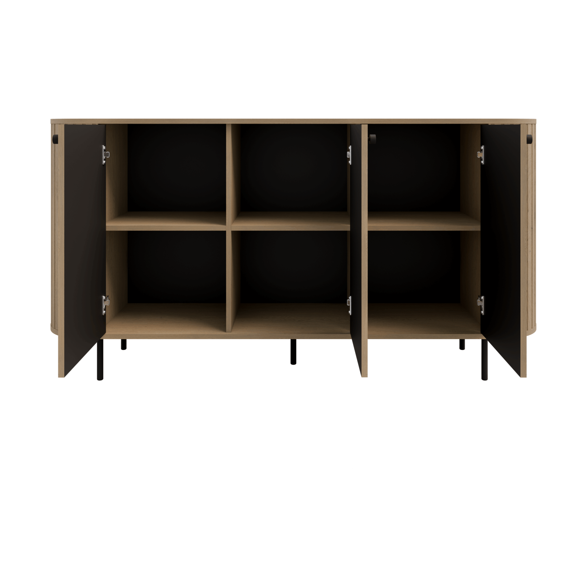 Komoda Ovalio została zaprojektowana z myślą o maksymalnej funkcjonalności i porządku. Posiada 3 pojemne szafki, które zapewniają przestrzeń na przechowywanie książek, dokumentów, tekstyliów lub innych codziennych przedmiotów. Dzięki temu komoda pozwala utrzymać wnętrze schludne i estetyczne.